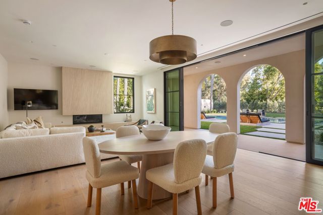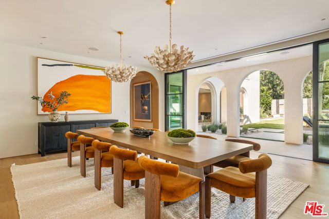 The Liebe compound is a premier romantic destination home offering an enchanting mix of the intimate, the vibrant, and the tranquil. Redefining the urban sanctuary for the global stage, this 1.3-acre Moroccan-modern compound is a rare architectural estate perfectly positioned for private, sophisticated living and for Los Angeles' upcoming spotlight during the World Cup and Olympic Games. The design, both vibrant, and filled with modern energy reflects a romantic classicism in the repetition of the arches and walk loggias that are a thematic emphasis for both the upper and lower levels throughout the household. The Loggias also act as a transition space allowing for moments of beauty and serenity as you enter and exit from the main home to the adjoining out buildings through sleek contemporary glass doors. Across four distinct structures, this nine-bedroom, fourteen-bathroom estate offers the ultimate zero-edge pool rivaling the finest hotels on the global stage, a private theater, gym structure, pool/gaming structure, in-house spa and a 600-bottle showcase wine wall. From the 15-car motor court and independent two-story staff house to the sprawling 2,400-square-foot primary sanctuary and three professional-grade kitchens, every inch is engineered for high-security, large-scale entertaining, and total seclusion. This is the very essence of a secret garden compound, both home and wellness center, a retreat from the bustle of the center of Beverly Hills just 10 minutes away. For those who have globetrotted their entire lives, this is a respite oasis, a home as a singular compound; your own personal palace and gardens sited behind gates and privacy. This is a destination home that gives way to an entire world of relaxation, serenity, health, and wellness.Approved plans ready to build a pickleball court while leaving the soccer field lawn in place and all surrounded by mature landscaping on a quiet street in the Estate Section of Benedict Canyon approximately 25 minutes to Los Angeles' premier private airport - Van Nuys private, coveted Warner Avenue Elementary and 10-30 minutes to almost every top private school in Los Angeles. This is a prime example of new construction that delivers state of the art functionality with architectural romance.