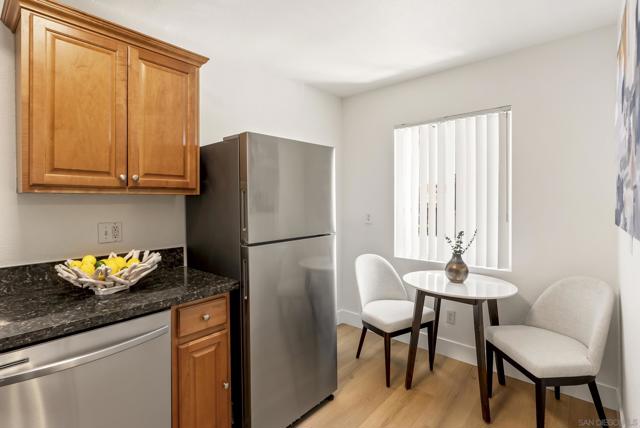 Located in the heart of Normal Heights walking distance to North Park and all the dining and attractions of Adams Ave, this remodeled one bedroom one bathroom upper-level condo has everything you need! The home has just upgraded with new wide-plank luxury vinyl flooring, new stainless steel appliances, modern lighting fixtures in kitchen and bathroom, and fresh paint throughout. The kitchen also includes plenty of upgraded cabinet space, granite counters & backsplash, and a breakfast nook. The gated Palm Terrace complex offers an assigned parking space and community laundry, as well as easy freeway access. Don't miss this opportunity!
