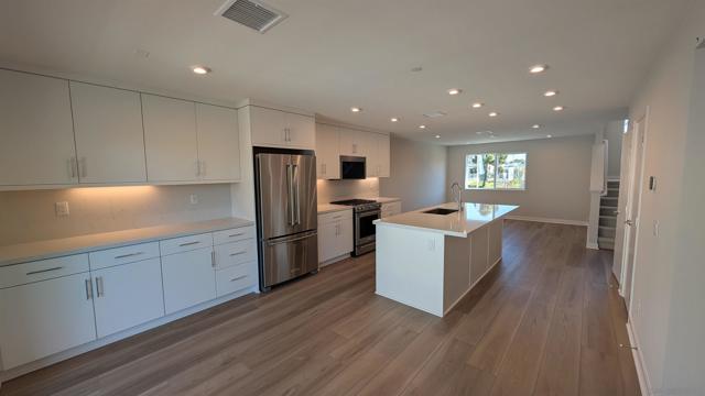 Be the very first to live in this stunning, newly constructed 3-story upgraded condo. Located in the highly desirable new Mira Vista community, this bright and modern home offers 1,614 square feet of highly upgraded, carefully designed living space. Key Features: • 3 Bedrooms + Large Flex Room / 2.5 Bathrooms: A versatile layout featuring a primary suite with two walk-in closets, secondary bedrooms on the opposite side, and a spacious first-floor flex room/office that opens to a private large patio. • Brand New Construction: Pristine condition with high-end finishes, including Oregon Pine cabinetry, upgraded quartz countertops with a designer backsplash. luxury vinyl plank flooring downstairs and upgraded carpet upstairs. • Chef’s Kitchen: Features a spacious center island, KitchenAid stainless steel appliances, and an open-concept flow into the expansive dining and living areas. • Outdoor Transitions: Enjoy fresh air from the covered deck off the main living room, or walk out from the flex room to a large private patio • Eco-Friendly & Tech-Ready: Significantly reduce utility costs with owned solar panels, a tankless water heater, and a NEMA car charger already installed in the garage. • Parking & Storage: Attached 2-car garage equipped with overhead ceiling storage racks for maximum organization. • Laundry: Brand new in-unit washer and dryer included in a dedicated laundry closet.
