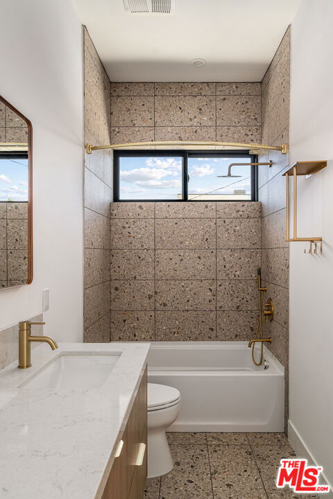 Gated and secure contemporary home in the heart of West Adams. Newly built modern, designed with an architectural flair and thoughtful functionality. Light-filled, open-concept living space with large picture windows, 10-foot ceilings and polished cement floors. The kitchen boasts ample cabinetry and brand-new stainless steel appliances, including refrigerator, gas range, microwave, and dishwasher. A private back patio surrounded by lush greenery, including a 90-year-old lemon tree, and half bath comprise the first floor. The oasis-like backyard also features banana, avocado, loquat, kumquat, and lime trees. Upstairs, natural light pours in through skylights, leading to three generously sized bedrooms, a laundry area with a stacked Samsung washer/ dryer, and a primary suite with a large closet, designer-tiled ensuite bath featuring gold hardware, and a private balcony with palm tree views. Prime Location for commuting, dining, and night life. Situated a short distance to LA's Metro line with direct train rides to Santa Monica Beach, Downtown LA, and the K Line straight to LAX. Close to Highly Likely, Mizlala, Vicky's All Day, Cento, Chulita, Johnny Pastrami, Tartine, Delicious Pizza, Alta and Whole Foods. With nearby access to Culver City's shops, restaurants, and local parks like Kenneth Hahn and Baldwin Hills.