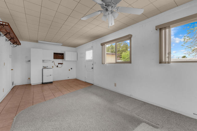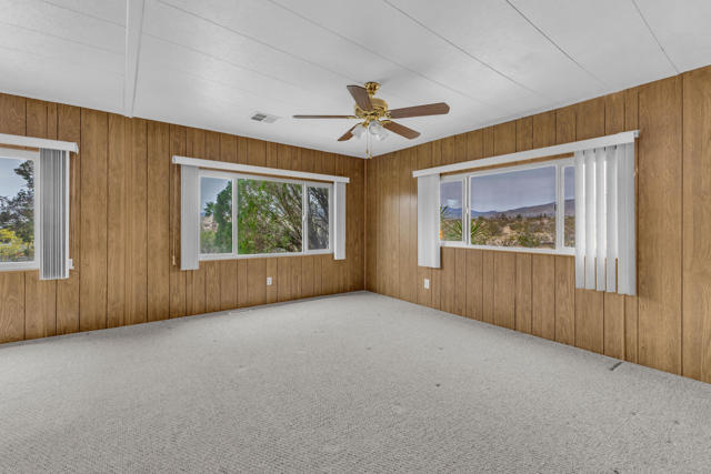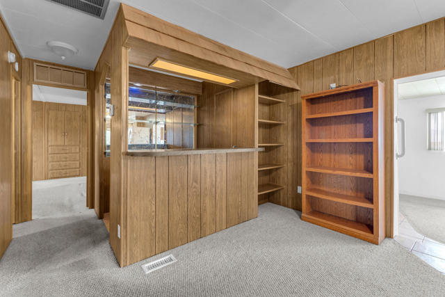 There is a particular kind of freedom that comes with finding the right community at the right moment. Desert Crest Country Club has quietly been that place for discerning active seniors who want more from their days - and this 1,668 square foot corner-lot home is a compelling entry point into that life.You own the land outright. No space rent.The home is more generous than its category suggests. A spacious living room anchored by dual ceiling fans and a wall of windows sets a comfortable, unhurried tone. The kitchen is a genuine workhorse - abundant oak cabinetry, granite-look countertops, gas cooktop, double wall oven, dishwasher, and a full side-by-side refrigerator. Storage here is not an afterthought. The wet bar and entertaining room, complete with a mirrored back panel and built-in shelving, gives the home a social dimension that most simply do not have. The primary bedroom features a full built-in dresser and vanity wall - thoughtfully designed, and entirely functional. Two bedrooms, two baths, a bonus room with tile flooring ideal as a studio, craft room, or flex space, and a two-car garage round out a floor plan that lives larger than it measures.Then there are the views. A sweeping northern panorama of open desert floor and mountain ridgeline that shifts with the light throughout the day. It is the sort of vista that turns an ordinary morning into something worth savoring.Desert Crest is not simply a place to live. It is a community with real infrastructure for an active, engaged life. Unlimited golf on the nine-hole par 3 course. Eight indoor shuffleboard courts. A mineral water pool. Three natural hot spring spas. A clubhouse with a game room, library, gym, and entertainment facilities. All streets are County of Riverside owned and maintained - a rare and practical detail that matters more than it sounds.This is resort-caliber living without the resort price tag, in one of the Coachella Valley's most distinctive and welcoming senior communities.The desert has a way of offering exactly what you need, right when you need it. This might be that moment.