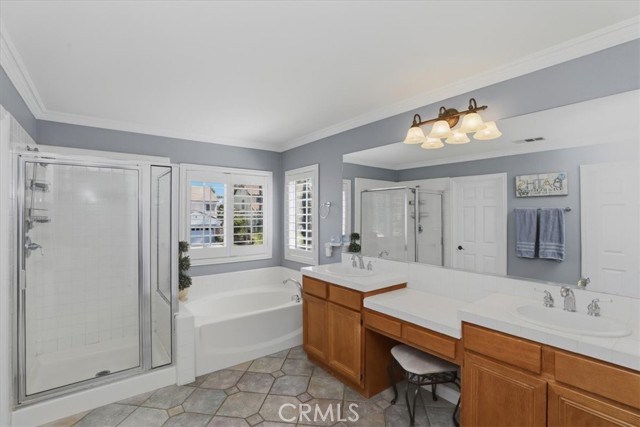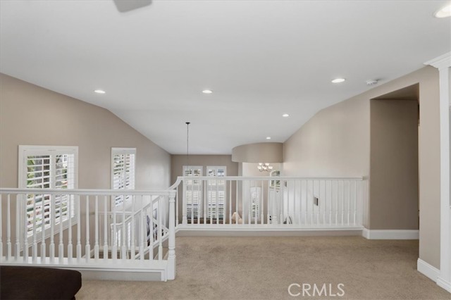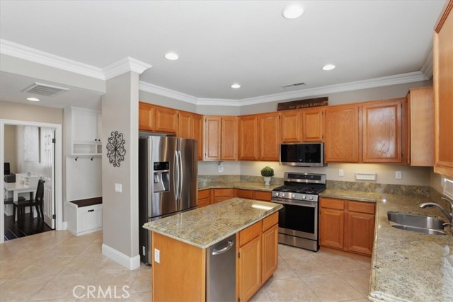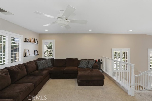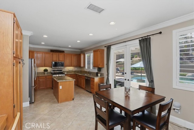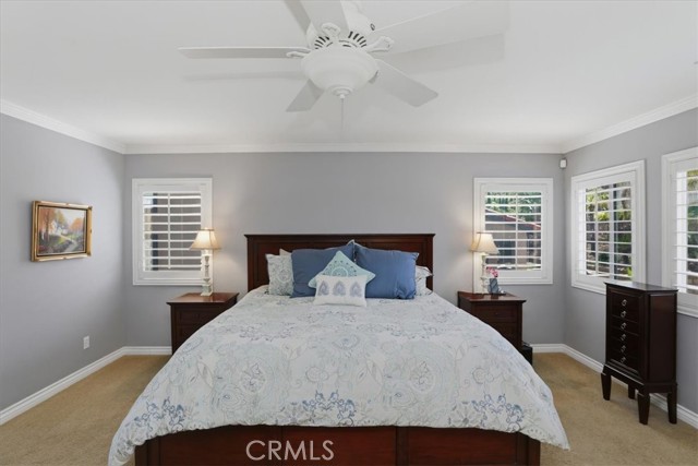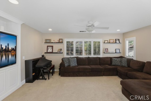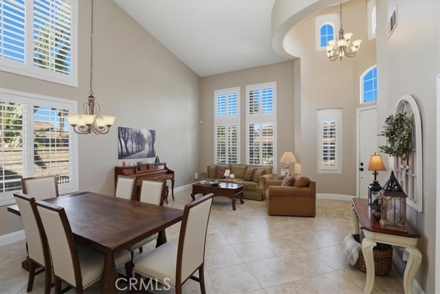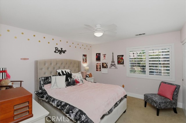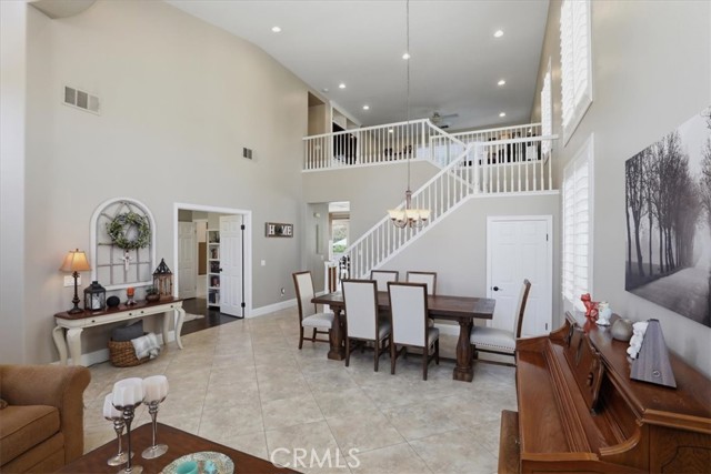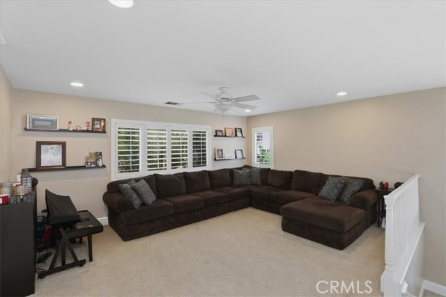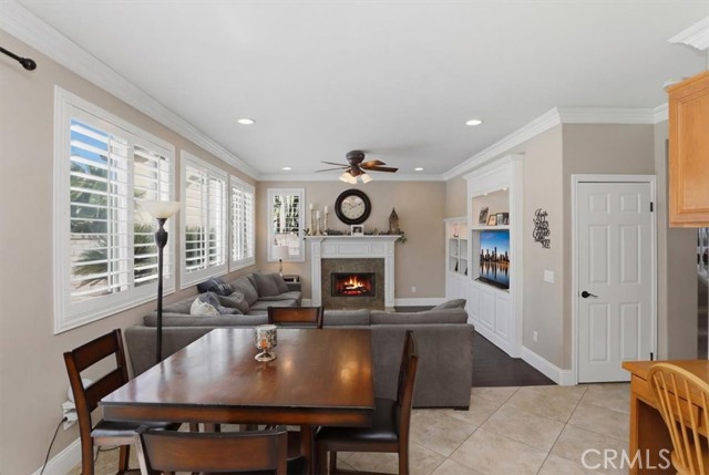 Paradise found in the highly sought-after Eagle Glen community! This exceptional home showcases one of the most desirable floor plans, offering approximately 2,885 square feet of well-designed living space with four bedrooms—including a convenient downstairs bedroom—three full bathrooms, a dedicated downstairs office, and an expansive upstairs loft/bonus room. Step inside to a grand entry featuring dramatic soaring ceilings, creating a light-filled and inviting atmosphere. The formal living and dining rooms set the stage for elegant entertaining, while the spacious family room features a built-in entertainment center and a stunning granite-surround fireplace with a custom mantle. The island kitchen is both functional and stylish, complete with granite countertops, stainless steel appliances, a built-in computer desk, and under-cabinet accent lighting. Upstairs, you’ll find three additional bedrooms, two bathrooms, and a generous loft/bonus room with custom built-ins—perfect for a media space large enough to accommodate an 85-inch TV. Throughout the home, enjoy thoughtful upgrades including plantation shutters, French doors, 7-inch baseboards, ceiling fans in every room, ample closet space, a custom storage bench, and Nest thermostats. Step outside to your own private resort-style backyard—truly a paradise! Enjoy a sparkling pool and spa with reef step and waterfall, stone seating pony walls surrounding a cozy fire pit, lush landscaping with Queen palms, sago, and Phoenix roebelenii palms, custom landscape lighting, stamped concrete, a lattice patio cover, and even a dog run. Additional highlights include privated gated courtyard, solar, low taxes and low HOA. Ideally located within walking distance to the Eagle Glen clubhouse—perfect for weekend breakfasts—and just a 5-minute drive to Dos Lagos for dining, entertainment, comedy shows, movies, and summer concerts. Beautifully upgraded and move-in ready—this is the home you’ve been waiting for!