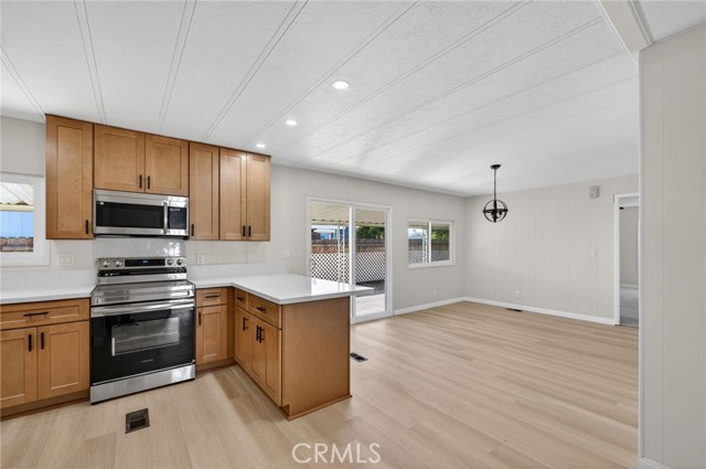 FHA Offers can now Be Accepted along with all financing types now. This beautifully updated 2026 home is located in the desirable Monte Vista Estates East 55+ community. Featuring 2 bedrooms, 2 bathrooms, and a 2-car garage, this home blends comfort, efficiency, and style in a peaceful setting. Enjoy brand-new energy-efficient windows and luxury vinyl plank flooring throughout. The upgraded kitchen showcases quartz countertops, custom cabinetry, stainless steel appliances, a dishwasher, and a gas range with ventilation hood, all designed with an open, modern layout. The home offers a formal living room, dining area, and spacious family room, providing plenty of space for relaxing or entertaining. Two large covered patios spanning the length of the home create exceptional shaded outdoor living space. The fully landscaped yard features a mix of low-maintenance plants and concrete hardscaping, plus a storage shed and several mature citrus trees in the backyard. This may be one of the nicest homes in the community. Schedule your tour today and explore the floor plan and 3D walkthrough for a complete virtual experience.