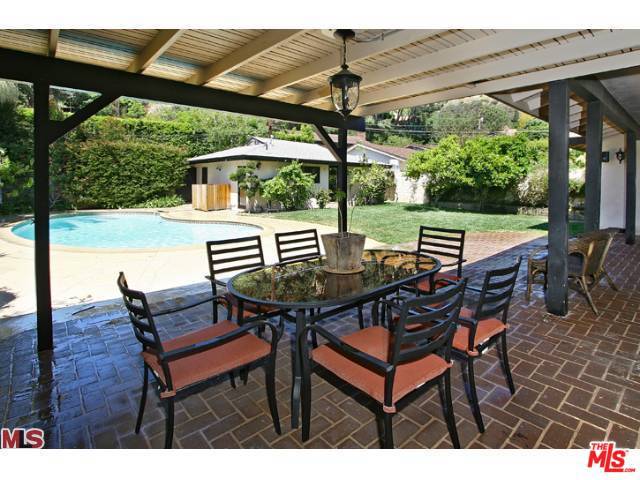 Exquisite 3 Bedroom / 4 Bathroom home located high above and back from the street surrounded by trees & security gates providing lots of privacy & protection. Feel secure knowing the premises are guarded by video surveillance & a complete alarm system. The Chef's kitchen provides stainless steel appliances, built in BBQ and range hood. Entertain guests at the bar which boasts stereo sound systems around the house. The grand entrance welcomes you to sun drenched rooms with hardwood floors and triple paned windows. Bathrooms are adorned in marble. Sliding doors & screens in the living, dining and Master rooms open to a beautiful heated pool within a large serene backyard and patio nestled around lemon and orange trees. Brand new water softener/filtration system for the entire house, and an additional brand new water softener/filtration system in the kitchen. Private 2 car garage and plenty of street parking.