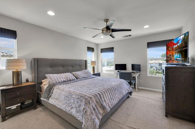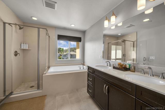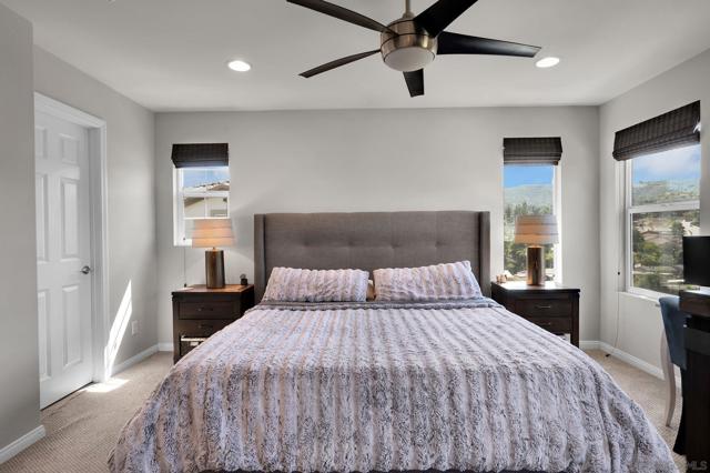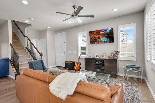This beautifully cared-for end-unit townhome is a home that has been truly cherished, offering added privacy, scenic mountain views, and a layout that lives like a detached residence. The spacious floor plan includes three bedrooms, two and a half bathrooms, a dedicated indoor laundry room, a two-car attached garage with direct access and a new Tesla charging port. The light-filled interior features brand-new custom paint throughout and new luxury flooring across the entire first floor, complemented by elegant plantation shutters. The open-concept living area creates an inviting space for both everyday living and entertaining, while the kitchen flows seamlessly into the main living space—perfect for gathering with family and friends. Step outside to a private yard, ideal for relaxing or outdoor dining while enjoying the surrounding mountain views. Additional highlights include central air conditioning, maintenance-free synthetic grass, large walk-in closet, and a relaxing common area just outside your front door. Ideally located in one of Lakeside’s most desirable areas, near shopping, dining, and convenient freeway access, this home has been well maintained and thoughtfully cared for. It offers comfort, privacy, easy low-maintenance living, and, above all, a perfect space to call home.