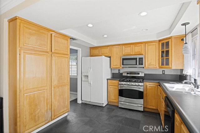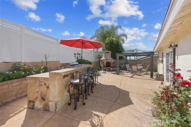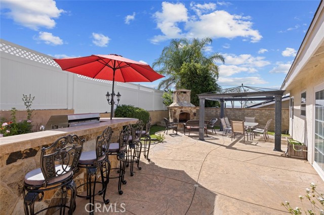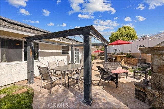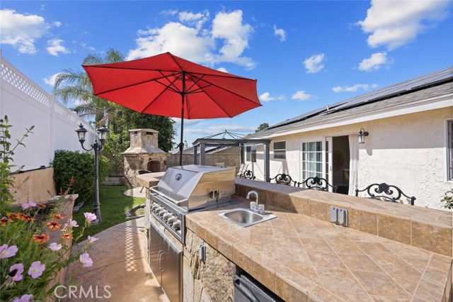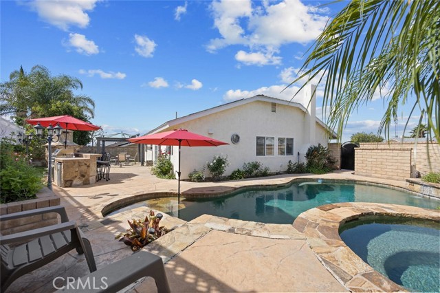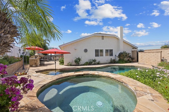 Incredibly Charming SINGLE STORY POOL HOME with Tesla Solar nestled on a sweeping interior corner lot of a culdesac street! Welcome home to this lovely Santa Clarita residence complete with resort style swimming pool, spa, outdoor fireplace and built in BBQ making this lovely home an entertainer's dream! Bursting with natural light, this home boasts vaulted ceilings, slate tile floors, upgraded kitchen cabinetry and full size indoor laundry! The primary suite is incredibly spacious and looks out to the beautifully manicured backyard and detached pergola! The 2 additional bedrooms on the main floor share the hall bathroom. With 2 car attached garage and OWNED TESLA SOLAR panels this home is not just stylish but functional and fun! Just a few minutes to nearby schools, the 14 FWY, shopping restaurants, parks and Santa Clarita trail system! No HOA and No Mello Roos! This is a home you will cherish for years to come!