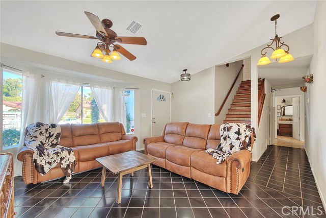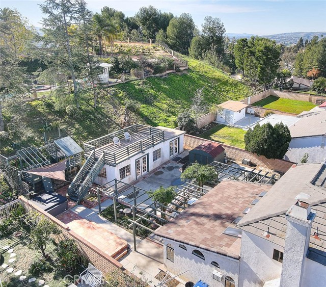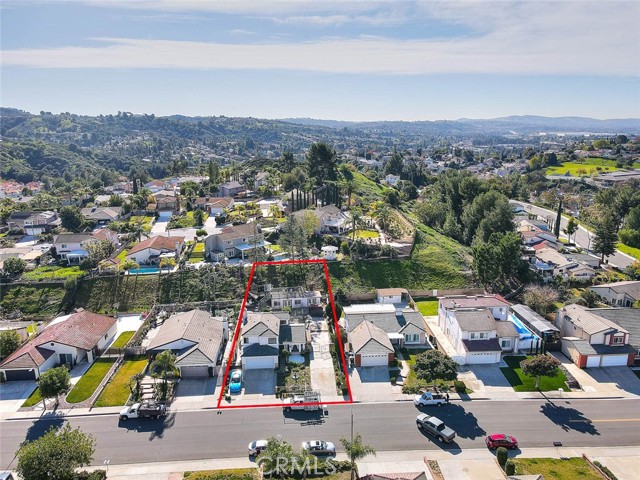 Welcome to the North Country subdivision in Diamond Bar. Featuring 4 bedrooms and 2.75 bathrooms with 1 large bedroom (no closet, but room to add a closet) and 1 bathroom downstairs. The home has been expanded from the original 1552 sf with a family room addition and a downstairs bedroom with an enlarged bathroom that boasts a shower for mobility challenged use. 2397 sf total living space. The addition is 400 sf and 30 years old. It is well built with photo albums showing the construction- which will allow for ease of permitting in the future. A local Diamond Bar architect with many years of working with the city, has quoted appx $800 to $900 for engineering and $6200 for working plans and title 24. If you choose to permit the additions in the future, Diamond Bar will have permit fees. Vaulted ceilings flow through the living room as you enter the home. The kitchen was remodeled from original- offering a gas range, recessed lighting, and tiled countertops. There is a convenient office area or kitchen extension with a fireplace. Breakfast bar seating faces the kitchen from the family room. The upper floor features 3 bedrooms and 2 remodeled bathrooms. The spacious 10079 sf yard offers wonderful vistas of the snowcapped mountains from the elevated view deck which sits atop a 2-bedroom frame and stucco casita consisting of an additional 445 sf. The 2-bedroom casita has electricity installed and water is possible. The slab and back wall and roof were permitted- however, later on the owner enclosed the building without permits- but in a professional manner. Extra-large gated RV parking and multiple storage sheds. Relax in the newer spa that was added in 2024. The HVAC was upgraded circa 2015. The home has been recently repiped with copper- for many years of carefree living ahead! New skylights mid March 2026. A new rollup 2 car garage door and opener were added in 2022. Walk to Peterson Park which has lighted soccer fields and a baseball diamond. A skateboard park is an additional highlight. Award winning schools consist of Diamond Ranch High, Lorbeer Middle School, and Diamond Point, Pantera, or Golden Springs Elementary. Diamond Bar's motto is "Country Living."