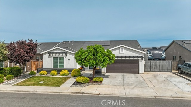Welcome to a beautifully curated residence where modern comfort meets effortless California living. Thoughtfully designed with a highly sought-after split-wing layout, this home offers both privacy and connection, perfectly suited for today’s lifestyle. At the heart of the home, an expansive open-concept great room flows seamlessly into a chef-inspired kitchen featuring a generous island, abundant cabinetry, and a large window over looking the backyard, ideal for both everyday living and elevated entertaining. Natural light pours in, creating a warm, inviting atmosphere throughout. Step outside to a centrally positioned covered patio, extending your living space and offering the perfect setting for outdoor dining, relaxing evenings, or weekend gatherings. The private primary suite is a true retreat, complete with a spacious en-suite bath and walk-in closet, while the secondary bedrooms are thoughtfully tucked away offering comfort and versatility for guests, family, or a home office, each with its own walk in closet. Situated on a well-appointed lot with RV parking and enhanced curb appeal, this home combines functionality with elevated design in one of Shafter’s most desirable communities. Close to parks, schools, and growing amenities this home does not miss. Each corner has been thoughtfully designed, and tastefully upgraded. This home is a true show stopper. With Solar, a shed, RV parking, full landscaping, and even uplighting throughout the exterior, there is nothing the seller did not think of. If you're looking for a home walking distance to the park, minutes from highway 99, and near Shafters most booming community, call your agent for a showing today.