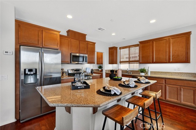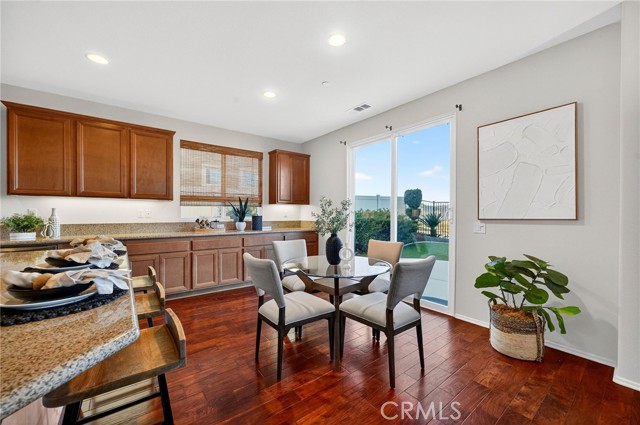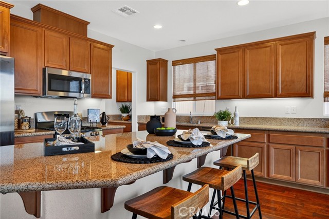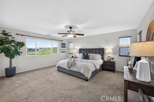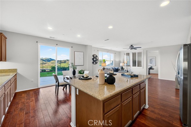 Welcome to this beautifully appointed home located in the highly desirable Alberhill Ranch community of Lake Elsinore. Situated on a large elevated view lot, this spacious 5-bedroom home plus downstairs office offers 3 full bathrooms, a functional open floor plan, and stunning scenic mountain views. Step inside to an abundance of natural light and expansive living spaces designed for both comfort and entertaining. The upgraded kitchen features granite countertops, stainless steel appliances, a large center island with bar seating, generous cabinetry, and a convenient butler’s area. The kitchen opens seamlessly to the breakfast nook and oversized family room, creating the perfect gathering space while offering views of the backyard and surrounding hills. The flexible floor plan includes a downstairs guest bedroom and full bathroom along with a private office, ideal for multigenerational living or working from home. Upstairs you’ll find four additional spacious bedrooms including the oversized primary suite filled with natural light and beautiful views. The upgraded primary bathroom features dual vanity sinks, a walk-in shower, separate soaking tub, and a walk-in closet. A convenient upstairs laundry room and dual zone HVAC adds everyday functionality. Outside, enjoy excellent curb appeal and an elevated lot with unobstructed mountain views, creating a peaceful setting for relaxing or entertaining. Residents of Alberhill Ranch enjoy fantastic community amenities including resort-style pools, a splash park, clubhouse, parks, playgrounds, and miles of scenic walking and hiking trails throughout the community. The neighborhood is known for its beautiful views, open space, and welcoming atmosphere. The home is also conveniently located within walking distance to award-winning schools, close to shopping, dining, and everyday conveniences, with easy freeway access for commuters. This home offers the perfect combination of space, views, and community lifestyle in one of Lake Elsinore’s most desirable neighborhoods.