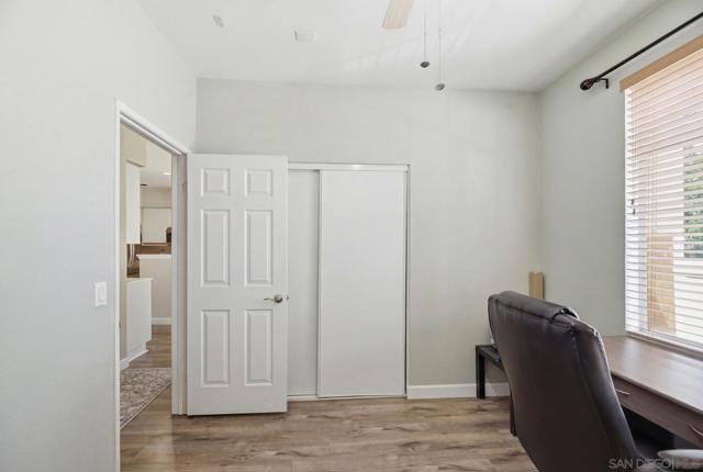 Highly desired Sabre Terrace community. End Unit with lots of sun light, Entry door is surrounded by lush landscaping total privacy & serenity. No neighbors in front of the unit or facing the unit. Nice size living space well designed, wood like flooring, living room with fireplace, recess lightings & balcony to enjoy the fresh air. The oversized primary bedroom has an ensuite bathroom & huge walk-in closet. Attached 1 car garage with plenty of storage, laundry in garage. Home close to all shops, easy freeway access & Award winning Poway