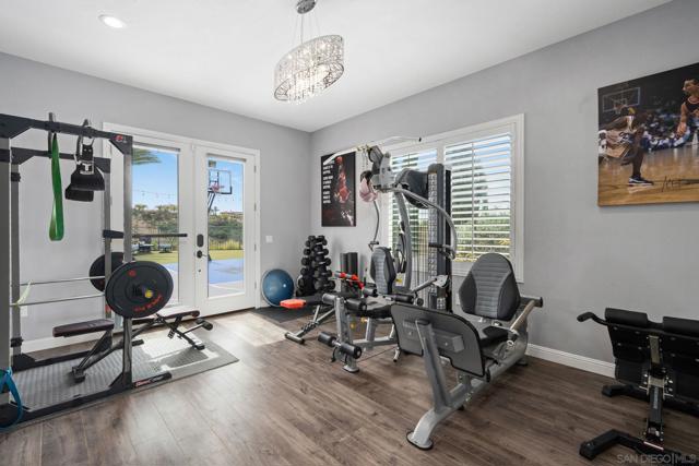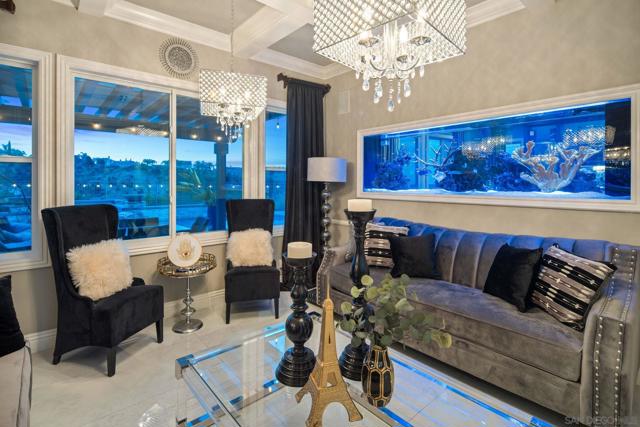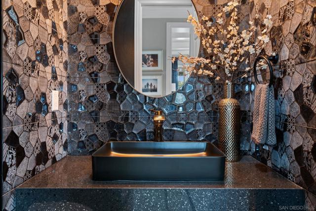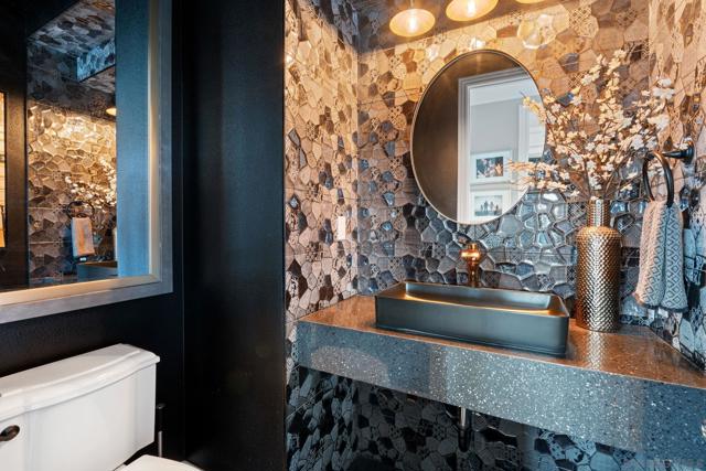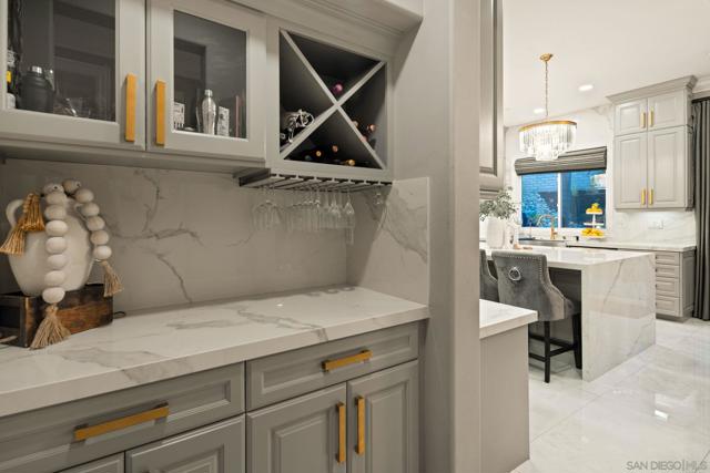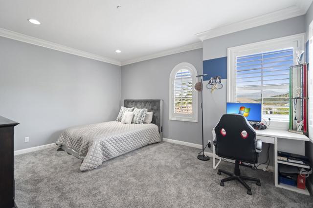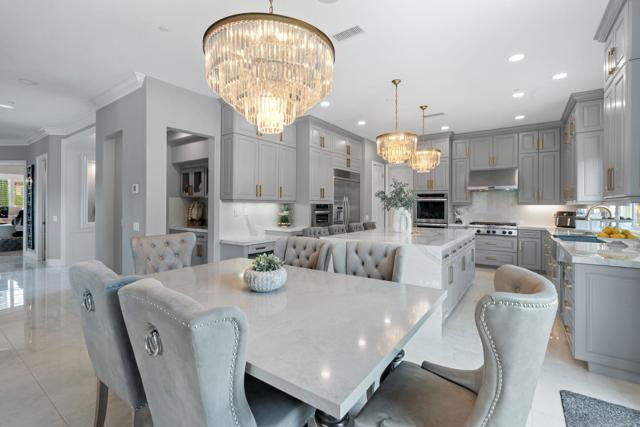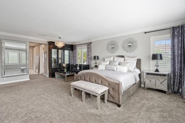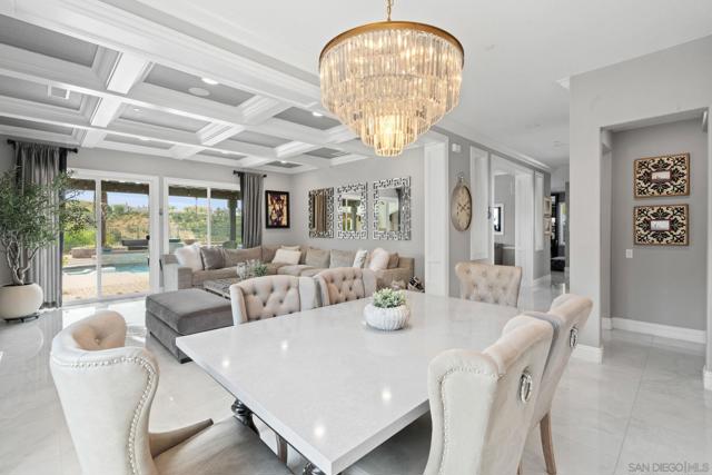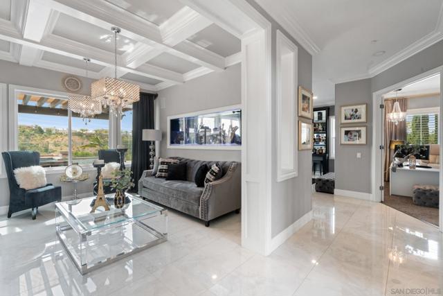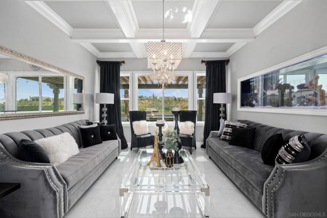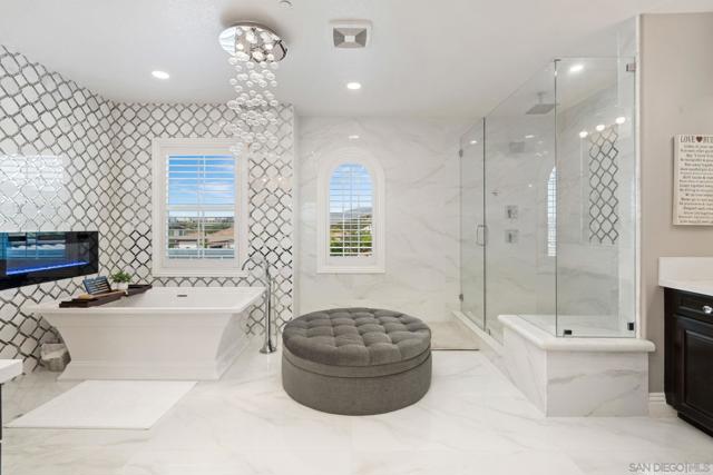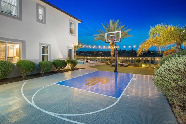 Welcome to one of the most exceptional homes ever offered in Stonebridge Estates, showcasing impeccable upgrades and a truly elevated luxury lifestyle. A grand double-door entry opens to a dramatic dual staircase with a statement chandelier, setting the tone for the elegance throughout. Beautiful tile flooring spans the main level, complemented by coffered ceilings and custom wall paneling that add depth and sophistication. The beautifully updated chef’s kitchen features high-end finishes and is designed for both everyday living and seamless entertaining. The home offers 5 spacious bedrooms, one currently configured as a private movie theater, including a main-level bedroom with its own en suite bathroom. In addition, there is a dedicated office and a separate home gym, both of which can serve as optional bedrooms. Each bedroom includes its own en suite, while the stunning primary suite feels like a private retreat, complete with a spa-inspired bath, freestanding soaking tub, electric fireplace, and a custom built-in entertainment center. Additional highlights include a striking saltwater fish tank and custom built-in entertainment center in the family room. The resort-style backyard is nothing short of spectacular, featuring a gorgeous pool with dramatic fire bowls, a cabana with fireplace and TV, a full outdoor kitchen with BBQ, pizza oven, and bar seating, plus a half basketball court, all set against serene canyon views. Designed to truly have it all, this home offers an unmatched blend of luxury, comfort, and functionality, one of finest properties ever in Stonebridge