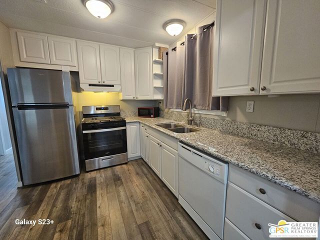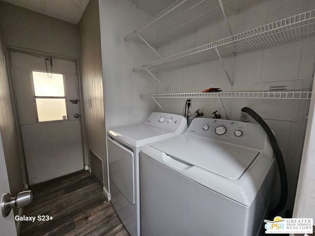 WELCOME HOME to Skys Haven, a premier Senior Community in Desert Springs. Enjoy resort-style amenities with three pools, 2 spas, clubhouse, library and exercise room. Enjoy beautiful surroundings and stunning desert views. Whether you're looking to relax by the pool, explore the desert, or connect with neighbors, this community is the perfect place to call home. THIS IS A GREAT DEAL! This 2 bed, 2 bath updated home is adorable. Laminate flooring and faux wood blinds throughout. New cabinets, slab counter tops with nice island/pass thru, newer appliances including washer and dryer. The home has Central AC plus Evaporative cooling for those not so hot days. It boasts a little Desert Oasis in the private backyard with artifical grass and patio for enjoying those beautiful desert evenings. There is also and enclosed patio that can be easily upgraded, a mud room and ramp to the front door. Under the carport you will find 2 good sized storage sheds. This unit is on a Permanent Foundation, recorded 433(a). Seller to pay up to $5,000 towards buyer's recurring/non-recurring closing cost and provide a Home Warranty. Come see! This one will go fast.