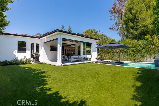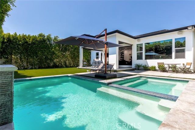 Uniquely designed modern architectural with stunning cutting-edge designer finishes available for short term lease! This completely rebuilt 1-story home with over 3,000 sq ft, 5 bedrooms and 3.5 bathrooms exhibits true attention to detail while offering distinctive bright and light-filled open floor plan. Gourmet custom Italian kitchen includes 66” professional fridge-freezer, range-top, dishwasher, and large island with waterfall quartz counters. Master suite with spa-like bath and large walk-in closet open to the amazing yard. A seamless combination of indoor-outdoor living makes this house an entertainer's dream. Large doors lead to tranquil backyard which boasts beautiful pool and spa, plenty of grassy yard and entertaining space with the utmost privacy. Other features include European oak floors fully furnished and designer lighting throughout, soaring 10 and 12 foot ceilings, alarm system, Close to shopping malls and restaurants If you are looking to enjoy the best of the California lifestyle, while just minutes away from shops and restaurants, movie theaters this home is a must see! Nearby attraction includes all the best LA activities within 10-15 minutes away..plenty of restaurants, movie theaters, gyms and much more!