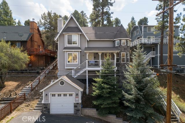 Charming Mountain Retreat with Views, Income Potential & Unique Design! Welcome to this one-of-a-kind 3-bedroom, 2-bath custom home in the heart of Big Bear City. Perched on an elevated lot with stunning mountain views, this beautifully maintained property offers cozy charm, a spacious layout, and a turret-style room full of character. Perfect for full-time living, a vacation getaway, or a short-term rental investment, this home features a beautiful stone fireplace, a spacious deck ideal for entertaining, an attached garage, and tall pine landscaping that enhances the serene mountain setting. Conveniently located just minutes from skiing, the lake, hiking trails, and Big Bear Village. Seller may consider a rate buy-down or contributing toward closing costs, depending on the strength of the offer.