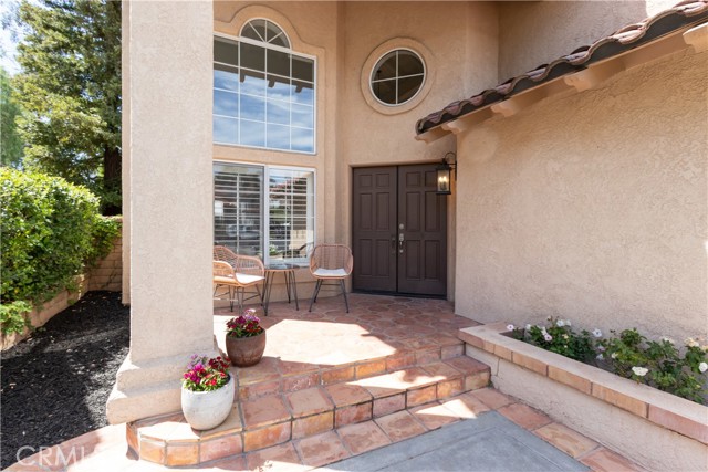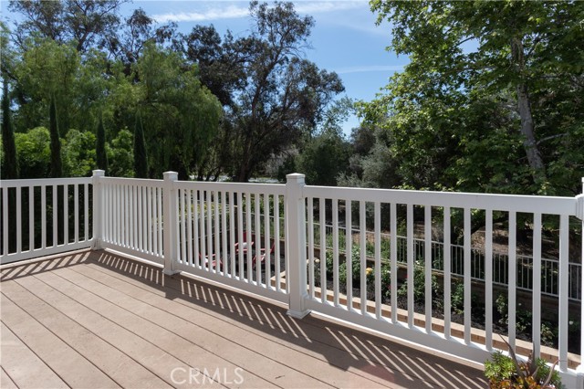 Welcome to 21865 Delicia in the highly coveted enclave of Rancho Cielo. As you approach this home you will immediately be drawn to it's inviting curb appeal and it's location at the end of the cul de sac on a single loaded street. Locations do not get better than this! The rear yard and deck open to nothing but trees and trails. The peaceful nature behind the rear yard and the rear deck is true magic! This 2811 square foot two story home boasts 5 bedrooms and three bathrooms. Enter this immaculate home and you will be drawn in by the soaring high ceilings, the soft white paint colors and the LVP plank floors downstairs. The dramatic staircase sets the stage at first sight. The remodeled kitchen boasts stainless appliances, granite counters, a breakfast bar and a breakfast nook. The kitchen opens to the family room with fireplace and built in bookshelves. The downstairs bedroom features a built in murphy bed and a convenient downstairs upgraded bath. The upstairs primary bedroom has it all. Enjoy the sitting area with a slider to an outdoor viewing deck. The primary bathroom is fully remodeled with the latest design including a separate dramatic soaking tub. The three upstairs bedrooms are spacious and ready for a buyer to make their own. The home has been fully re-piped and features a whole house water filtration system & hot water circulating pump & new HVAC ducting. 3 car garage. Inside laundry. Rancho Cielo features a 24 hour guard gate and resort like amenities including pickleball/tennis courts a pool, spa, play and picnic area. This community is bathed in nature and walking trails.