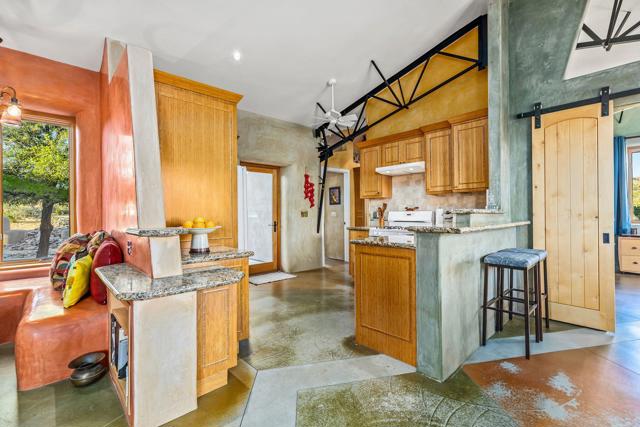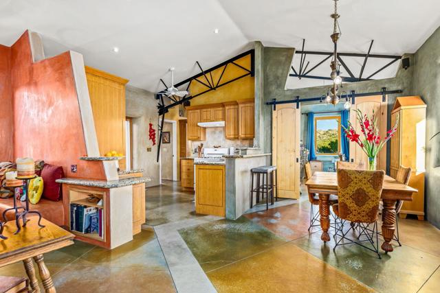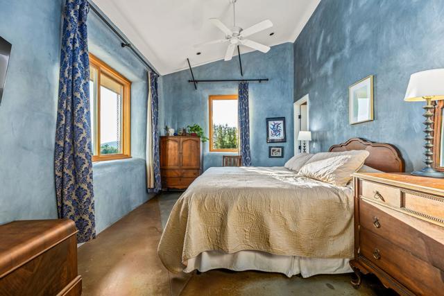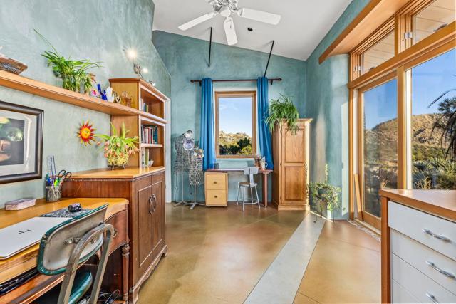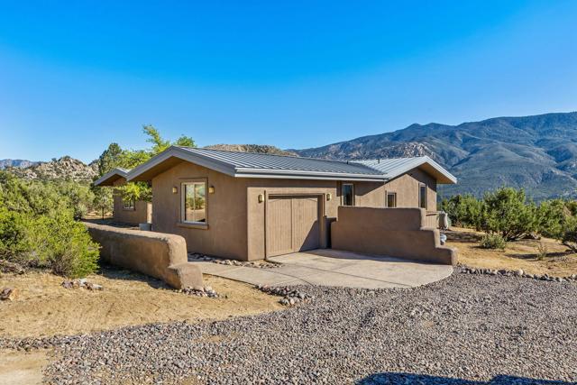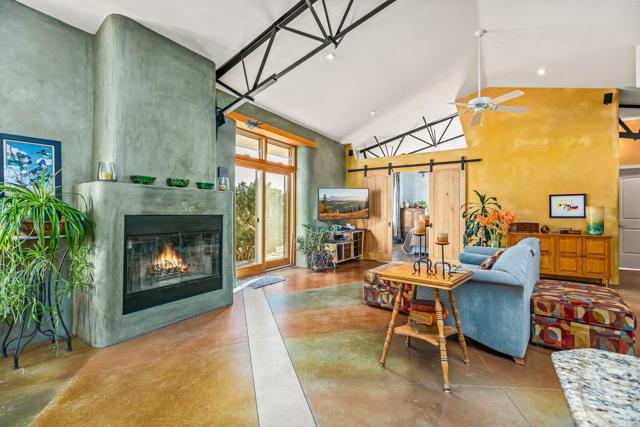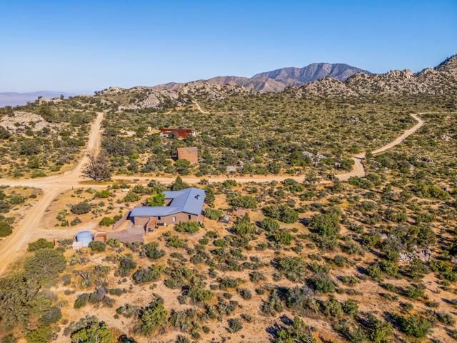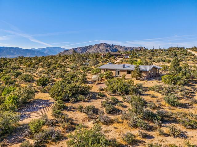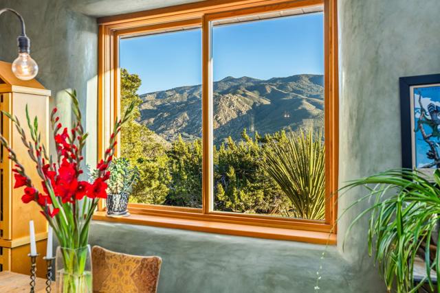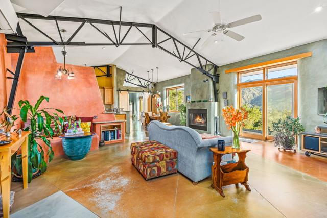 This custom home was designed and built, not assembled-crafted for exceptional privacy, longevity, and intentional living. Offering 3 bedrooms, 2 bathrooms, and a flexible bonus room, this thoughtfully designed retreat welcomes you with an open floor plan featuring exposed steel trusses and panoramic mountain views, filling the space with natural light. Backing directly to the National Forest, the home provides unobstructed views, exceptional privacy, and star-filled night skies permanently protected from any development. Enjoy both breathtaking sunrises and sunsets, along with peaceful moonrises and moonsets, all from the comfort of your own property. Experience a climate 15-20 degrees cooler than the desert, while still being approximately 20 minutes from El Paseo and the desert floor.Engineered for durability and efficiency, the home features exposed open web steel truss construction, approximately 2-foot-thick insulated walls, deep footings, and a standing seam metal roof, along with burnished limestone plaster walls and clear pine window and door casements that bring warmth and character. Designed for sustainable mountain living, the home incorporates passive solar design-capturing winter sun for natural warmth while staying cool in summer-paired with radiant heated concrete floors and impressive energy efficiency. Thoughtful enhancements include a whole house water softener system, reverse osmosis drinking water system, and a tankless instant hot water system.Outdoor and lifestyle features include paver stone multi-tiered patios and a welcoming front courtyard with a paved patio, creating ideal spaces for relaxing or entertaining while taking in the surrounding beauty. The property also offers a greenhouse for growing your own food, two garden sheds, a 5,000-gallon water tank, five water-collecting cisterns, and an HOA-approved fenced area for dogs, providing both sustainability and peace of mind. Step outside to scenic hiking and biking trails just beyond your doorstep, along with a peaceful labyrinth for reflection. Flexible spaces like the garage are ideal for a studio or workshop, making this home a true retreat for nature lovers, thinkers, creators, and those seeking a quieter way of life.This is a rare opportunity to own a home that is not only beautifully designed but intentionally built to last--schedule your private tour and experience the peace, craftsmanship, and lifestyle for yourself.