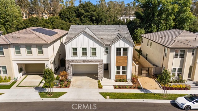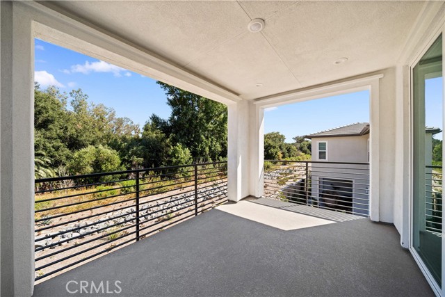 This stunning Toll Brothers home is situated in the highly sought-after and newly-built Meadows community, privately positioned along the scenic Serrano Creek Trail with no neighbors directly behind. Enjoy the energy efficiency of this 2023 build with new solar panels. Showcasing a modern farmhouse aesthetic and an open-concept design, this home perfectly blends style, comfort, and functionality. The chef-inspired kitchen is a true showstopper, featuring a grand center island, walk-in pantry, 6-burner stove, and top-of-the-line stainless steel appliances. It flows seamlessly into the expansive living and dining areas, where bifold sliding doors open to a private enclosed patio—creating the ultimate indoor-outdoor living experience, perfect for entertaining. A desirable ground-level bedroom and full bath offer flexibility for guests, multigenerational living, or a private home office. Upstairs, a spacious den provides additional living or workspace. Retreat to the luxurious primary suite, complete with a private balcony overlooking the tranquil trail. The spa-like primary bath features dual sinks, a soaking tub, a walk-in shower, and dual walk-in closets, offering both comfort and convenience. Each additional upstairs bedroom includes its own ensuite, and a convenient upstairs laundry room adds everyday ease. Additional highlights include a generous storage closet and a direct-access 2-car garage. Residents enjoy premium resort-style amenities, including a pool, spa, clubhouse, and community park. Ideally located near the 241 toll road, this home offers easy access to hiking and biking trails, parks, sports complexes, shopping, dining, and more—bringing together the best of lifestyle and location.