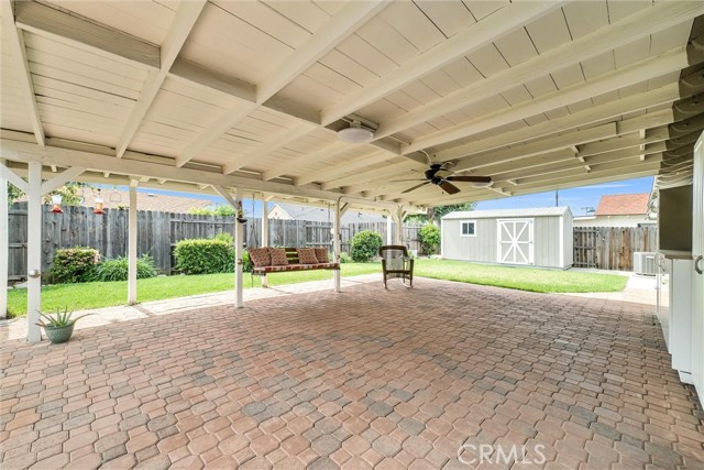 Looking for that home where you don't have to do anything but move in? Well, here you go! Proud to present this beautifully maintained single-story home, built in 1963 and offering a true turnkey condition. Rich in the charm and character of its era, this home combines a thoughtful layout with comfortable, inviting living spaces. The kitchen was remodeled in 2006 and remains in excellent condition. Features: stove, microwave, dishwasher, refrigerator, abundant cabinetry with pantry, pullout drawers and a convenient peninsula, making it both functional and welcoming for everyday living and gatherings. Step inside to a spacious living room that flows effortlessly into the dining area. Dining room sliding glass door opens to the backyard—creating a seamless indoor-outdoor connection. The home offers four generously sized bedrooms. 3 bedrooms are appointed with gorgeous warm Bamboo flooring, while the fourth bedroom/den flooring is tile. Nuetral Tile flooring throughout the living room, kitchen, dining area, and hallway provides durability and easy maintenance. The primary suite offers a comfortable and private retreat. *One of the bedrooms is being used as a den with gorgeous, full wall built-in entertainment cabinetry. This would be a great room for a gamer, office or just a room to relax in when you need a little quiet time. Blinds on all windows for privacy and beautiful ceiling fans throughout that may help to keep down those utility costs. Designed with both relaxation and entertaining in mind, the backyard features a large covered patio with built-in cabinetry, a lush green lawn, mature foliage, and a spacious storage shed. The patio setup presents an excellent opportunity to create a serving window from the kitchen, enhancing the outdoor entertaining experience. Paver finishes on both the driveway and patio, add to the home’s curb appeal and functionality. Situated on a cul-de-sac in a well-established neighborhood, this property offers a wonderful blend of timeless character, comfort, and versatile indoor-outdoor living. This home is ready for its next owner to move in and enjoy. You won't want to miss this beauty! NOTE" See inclusions