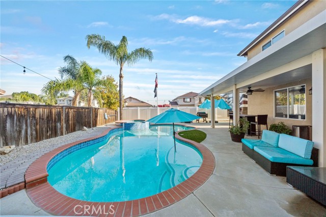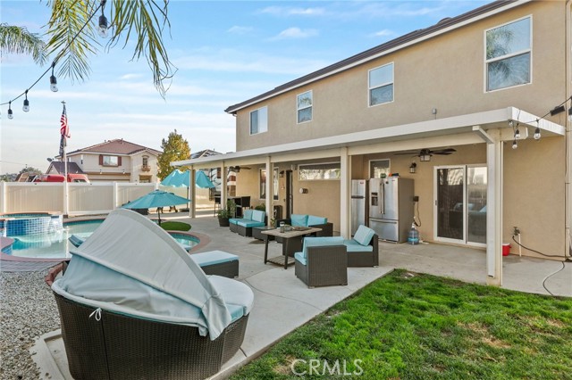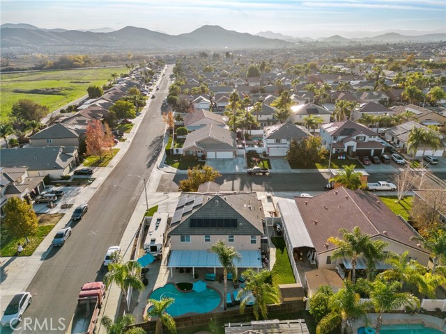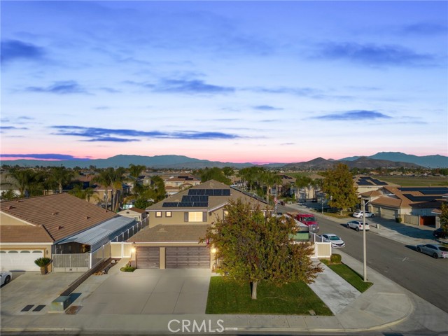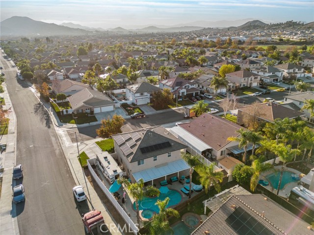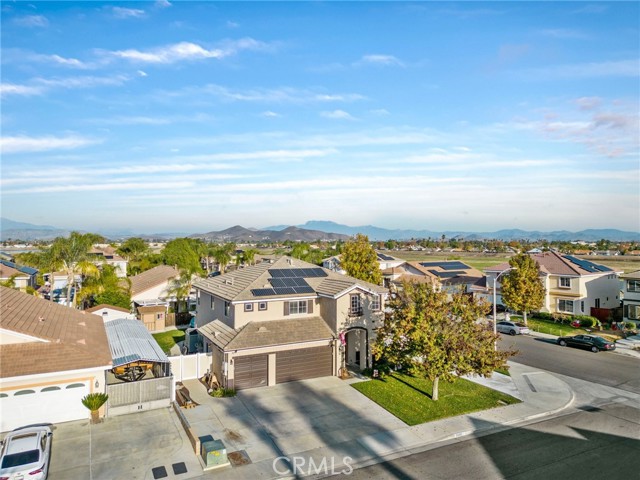 Welcome to this stunning Menifee pool home, perfectly positioned on a corner lot in one of the area’s most ideal locations. This beautifully updated home checks all the boxes, RV parking, 3-car garage, and a layout built for both everyday living and entertaining. Inside you’ll find 5 bedrooms, 3 bathrooms with a full bed and bath downstairs, plus a spacious loft upstairs, perfect for a growing family or multi-gen living. The heart of the home is the upgraded kitchen, featuring quartz countertops, stainless steel appliances, soft-close cabinetry, and pull-out drawers, all opening seamlessly into a cozy family room with a refreshed fireplace. It’s the kind of space where everyone naturally gathers. You’ll also appreciate thoughtful upgrades throughout, including surround sound downstairs, a whole house fan, ceiling fans, and a covered patio that keeps things cool and comfortable year-round. And with 32 solar panels, you’re set up for serious energy savings. Step outside to your private backyard oasis, complete with a sparkling pool, perfect for relaxing, hosting, and making memories all summer long. Location-wise, it doesn’t get much better. You’re near top-rated schools, coffee shops, parks, and walking trails, with easy access to the 215 freeway and quick connections to the 15. Close to Audie Murphy Ranch and just minutes from Canyon Lake, you’re right in the heart of Menifee living. Low taxes, no HOA, and a home that truly has it all. Call or message me to schedule your private tour before it’s gone.
