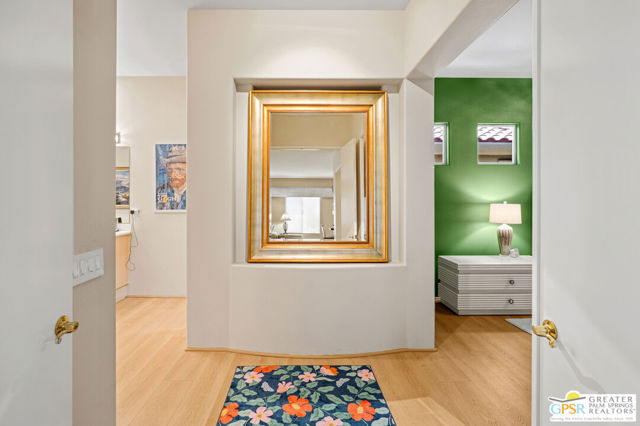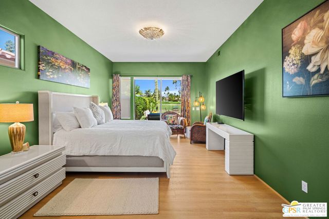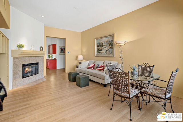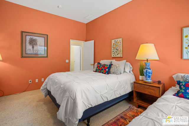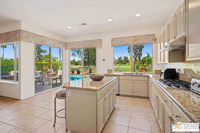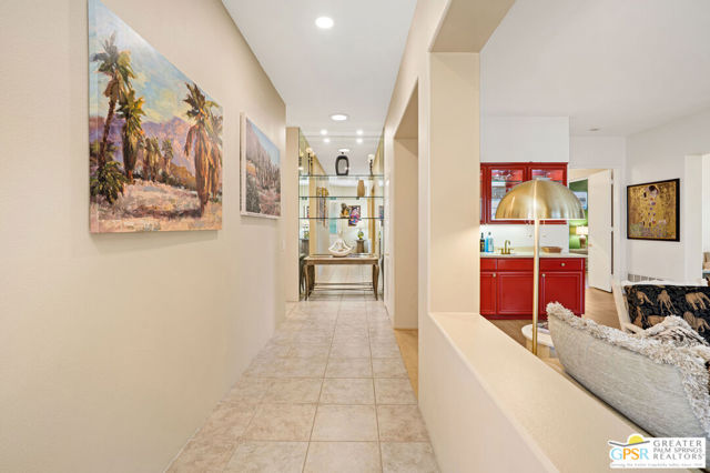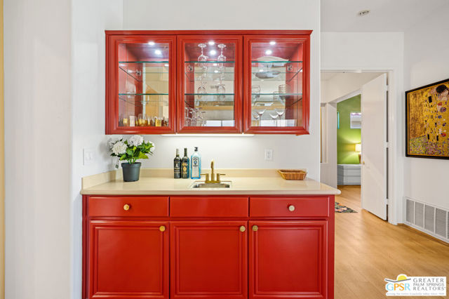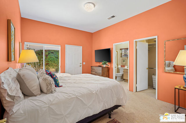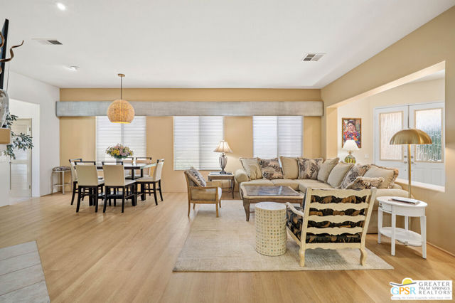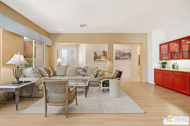This unique and completely remodeled, refurbished, and FURNISHED condo has it all! It is the largest 3 bedroom, 3 bath condo in a single level plan in this community. The oversized primary bedroom with a spa like bathroom and enormous walk-in closet provides a private retreat from the main areas, and other bedrooms, each with its' own bath! The third bedroom also has its own casita entrance to the outside for total privacy. The pool and spa offer wonderful fun times with views to the very large green space and the mountains to the west. The park like inner green area is accessible through a small gate in the patio fence for leisurely walks in the morning or evening. New light wood floors have been installed in the main living areas. The living room wet bar and interior walls have been freshly painted, new lighting and window shades provide all of the comfort levels one seeks. In the den is an additional sleeper sofa for those added guests. The kitchen is fully equipped for the new owner without having to start from scratch. The very upgraded two-car garage has built-in cabinets for additional storage, and a golf cart garage with its own electronically operated garage door. Just steps away you find one of the four community pools and spa. Ten beautiful holes of gof provide fun times in a supurb location in the heart of Rancho Mirage near shopping, dining, and Eisenhower Hospital and medical centers. This community provides through it's HOA 24 hr. guard gated security, complete roof maintenance, cable TV and basic internet, beautifully landscaped grounds and green spaces and earthquake insurance. A highly sought after location makes this property highly desirable for the permanent resident, vacation visitor or investor. Call listing Broker for appt. to show. cc
