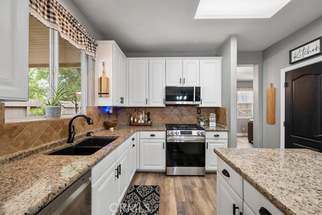 Welcome to this inviting family home in a quiet cul de sac in Paso Robles perfectly situated for raising a family or enjoying relaxed California living. Offering approximately 2465 square feet of thoughtfully designed space this four bedroom two and a half bath residence features a spacious three car garage and an open modern floor plan. Step inside to beautiful vinyl plank flooring that flows throughout the main living areas creating a clean durable and stylish foundation for everyday life. The heart of the home is the gourmet kitchen complete with granite countertops, newer appliances and plenty of space for family meals and entertaining. A cozy fireplace in the living area adds warmth and charm on cooler evenings. Upstairs you will find a convenient laundry room, a dedicated office ideal for remote work or virtual learning and a versatile loft that offers flexible space for a play area, homework station or lounge. The primary suite and additional bedrooms provide comfortable retreats for everyone. Outside the beautifully landscaped backyard is a true highlight complete with a relaxing hot tub perfect for unwinding under the starry Paso Robles nights enhanced by pretty ambient lights. A charming pergola creates an ideal spot for al fresco dining or simply enjoying the fresh air. The entire property feels move in ready clean and well maintained. Conveniently located near shopping dining and top rated schools this home offers the perfect balance of privacy and accessibility in one of Paso Robles most desirable neighborhoods. Do not miss this rare opportunity to own a turnkey family gem with the added benefit of leased solar.