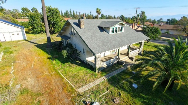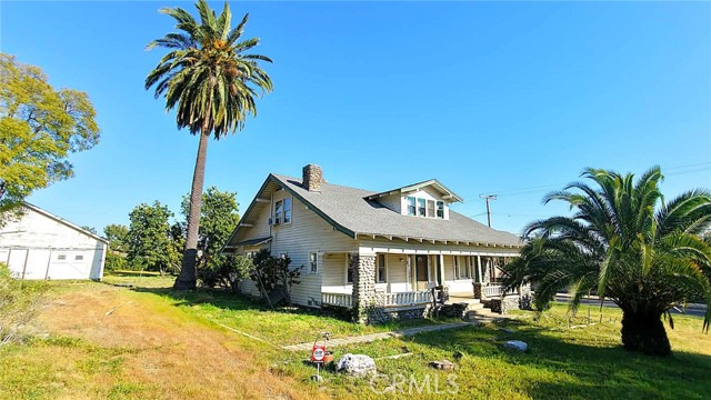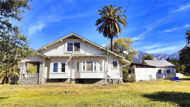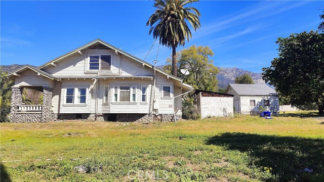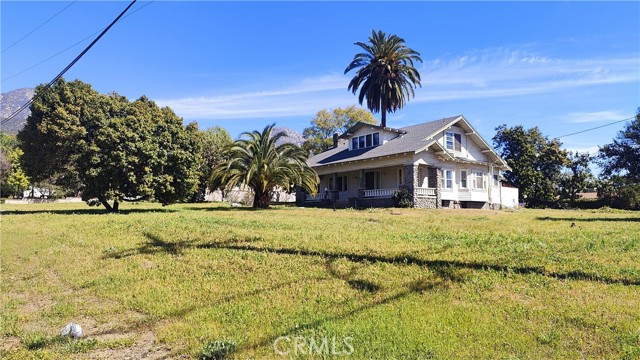Single two story Craftsman Bungalow home constructed in 1912 on an over 1 acre of fully flat all usable corner lot land with plenty of room for ADU, or sub-divide for development. Upland house. Located in highly desired part of San Antonio Heights Community with mountain view and other expensive homes. The home has a covered porch with large columns and natural stone and it is classified as an historic home with historic benefits for homeowner. The main level of the home offers a spacious living room with stone fireplace and built-in bookcase, family room, and good size kitchen with individual laundry room. Large bedroom with window seat and bath, sunroom, study or 3rd bedroom. Upstairs has approximately 800 square feet that can be used an oversized bedroom with a large bathroom and many closet spaces. The front yard, back yard , side yard are surrounded with many mature fruit trees with fruits from Oranges, Avocado, Grapefruit, white Sapote, Persimmon, Loquat trees and 2 driveways. Also there is a detached garage big enough as a workshop or park the cars or convert it to a ADU. Has many potential to build and make this a dream home or homes. One of the rare find in Upland with this type of big size land.