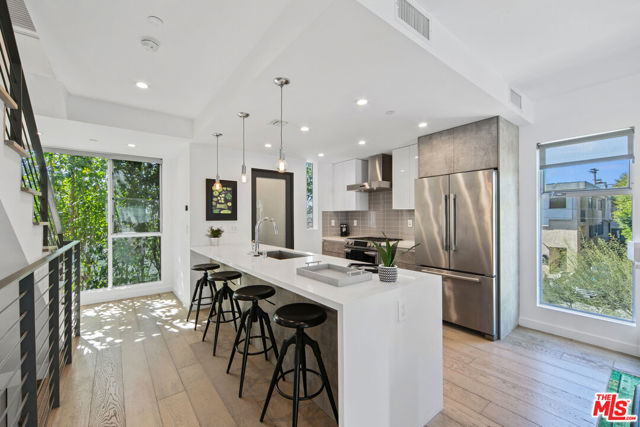 Indulge in the epitome of luxury living within this flawlessly crafted 3-bedroom, 4-bathroom sanctuary. A private two-car garage awaits, offering ample space for storage or the creation of a personal gym, complete with an electric car charging hook-up. Seamlessly transition to the lower level office or potential third bedroom, boasting its private bathroom and balcony. Ascend to the second level and be embraced by an expansive living area, illuminated by natural light pouring in through towering windows. A convenient powder room awaits guests, flowing effortlessly into the sleek chef's kitchen adorned with stainless steel appliances and a walk-in pantry. Bask in sunlight on the sun-drenched balcony, featuring a charming barbecue area. The third level unveils the pinnacle of relaxation in the exquisite main bedroom with ensuite bathrooms and a spacious walk-in closet. Adjacent, an additional bedroom awaits with its dedicated bathroom, ensuring the utmost comfort for visitors. Conveniently located on this level, a washer and dryer offer added convenience. Beyond its elegant architectural design, this newer construction boasts meticulous craftsmanship and modern amenities, promising a maintenance-free urban lifestyle perfectly tailored for the dynamic city dweller. Nestled in the heart of West Hollywood, just moments from the city's premier attractions, dining, and shopping, this property stands as a true gem, a must-see for those in pursuit of luxury living at its finest.