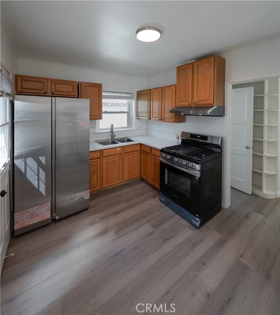This rear unit is located within a well maintained triplex- located in the heart of Old Torrance. Original hardwood floors have been refurnished and glisten in this beautiful space. Two bedrooms and 1 bathroom that has been completely remodeled. The sun drenched living room is adjacent to the eat-in kitchen with brand new stainless steel appliances and new countertops. Lots of character in this unit with built-ins within closets and even the hallway for books or picture frames. Wonderful floor plan with lots of potential to make it your own. Rear bedroom has direct access to a small private yard for enjoying your morning coffee. One car garage with an extra room for storage. Walking distance to restaurants, shops and Wilson Park for Saturday morning farmers market trips. Very clean light and bright unit that has been freshly painted throughout- ready for a new tenant. Split units have been added for heating and cooling in this awesome unit that is super walkable. This unit has its own laundry room with washer and dryer adjacent to the garage.