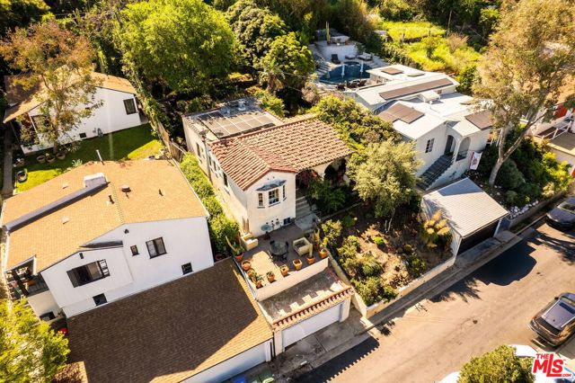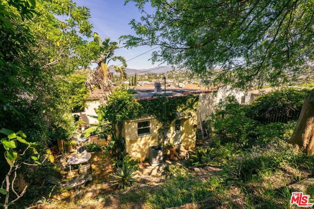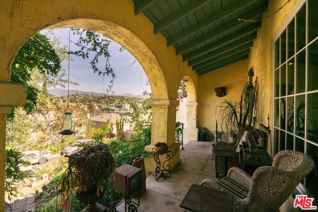 Perched in the hills of Glassell Park, this authentic 1930s Spanish Colonial captures breathtaking, explosive views and timeless character rarely found today. Nearly original in condition, this soulful home blends historic charm with thoughtful updates. From the moment you step inside, the craftsmanship speaks for itself. Gleaming hardwood floors, classic peg-and-groove detailing in the living and dining rooms, coved ceilings, carved wood beams, and a stunning magnesite fireplace that anchors the space. Arched doorways and beautifully corbelled ceilings create a warm, architectural flow throughout the home. Outdoor living is just as impressive, offering four distinct spaces designed for both relaxation and entertaining. Enjoy sunsets from the rooftop terrace, unwind on the covered front porch with arched openings, or host gatherings in the brick courtyard with a charming fountain. The terraced backyard is private and serene, with mountain views that create the perfect backdrop for evening sunsets--Buildable lot for a pool or ADU. Additional upgrades include Andersen dual-pane windows, updated Spanish-style tile roofing, R19 insulation, and fully paid solar panels, blending modern efficiency with historic integrity. Located in one of NELA's most sought-after neighborhoods, Glassell Park offers a vibrant mix of creative energy, local coffee shops, trendy restaurants, and neighborhood charm. With easy access to DTLA, Griffith Park, Eagle Rock, Highland Park, Echo Park, and Los Feliz, this is hillside living at its finest. Rare find, not to be missed!