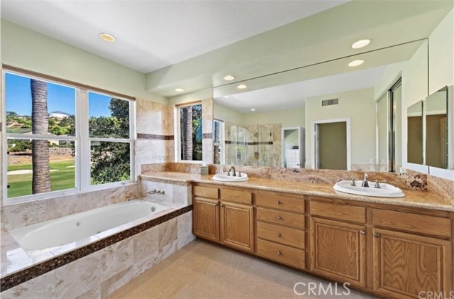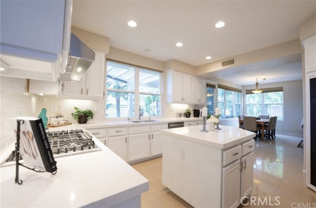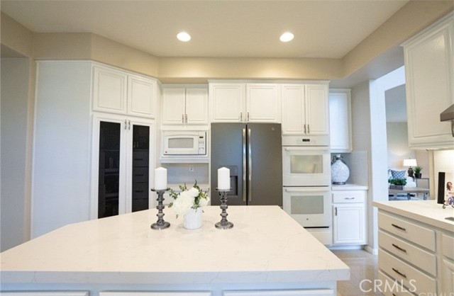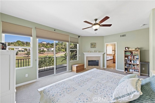Nestled on a peaceful, family-friendly cul-de-sac in the exclusive, 24/7 guard-gated Dove Canyon community, this meticulously maintained 5-bedroom, 4-bathroom single-family home offers the perfect blend of luxury, privacy, and timeless appeal. Surrounded by the acclaimed Jack Nicklaus Signature golf course, rolling green fairways, mature trees, and canyon vistas, every day feels like a resort retreat. Step through the elegant front door to an immediate, breathtaking panoramic view of the golf course—framed perfectly from the entry and living areas. The main level features beautiful porcelain tile flooring that flows seamlessly, complemented by warm wood floors in the dedicated office and convenient guest/in-law suite. This downstairs bedroom includes a full private bathroom and an oversized triple-door closet for exceptional storage. A grand sweeping wrought-iron staircase leads upstairs to four spacious secondary bedrooms, each equipped with energy-efficient ceiling fans, and a generous loft that boasts yet another stunning golf course outlook—ideal for a game room, media area, or cozy family hangout. Brand-new, plush carpeting adds fresh comfort throughout the upper level. The highlight is the luxurious primary suite, complete with a romantic fireplace, an expansive spa-like bathroom, and a private sliding door opening to a balcony overlooking the lush, verdant golf course greenery—perfect for morning coffee or evening relaxation. The heart of the home is the beautifully remodeled gourmet kitchen, featuring a large central island, sleek new countertops, updated backsplash, and crisp white cabinetry freshly painted for a bright, modern feel. It's designed for both everyday living and effortless entertaining. Outside, the expansive covered entertainment patio is a true standout—with remote-controlled adjustable louvers that let you customize shade and breeze while enjoying the natural beauty, tranquility, and golf course surroundings. The front yard offers a charming paved sitting area beneath mature shade trees, creating an inviting spot for quiet moments or casual gatherings. This pride-of-ownership gem delivers upscale Dove Canyon living at its finest: gated security, proximity to top-rated schools, miles of trails, community pool, tennis courts, and the private Dove Canyon Golf Club—all while embracing the serene, nature-rich lifestyle of south Orange County. Ready to make it yours? Contact us today for a private showing.