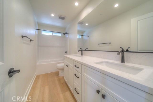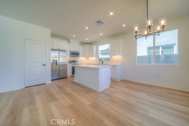 Address for The Cottages: 12665 4th Street, Yucaipa, CA 92399. Introducing Plan 2 at The Cottages at 4th, a beautifully designed newer two-story home for lease offering approximately 2,008 sq. ft. with 4 bedrooms and 2.5 baths. Blending modern efficiency with timeless cottage charm, this thoughtfully built home features hard surface flooring throughout, solar, LED lighting, a private backyard, and much more. The open-concept first level showcases a stylish kitchen with quartz countertops, stainless steel appliances, and real wood soft-close cabinetry, all overlooking the spacious great room and dining area. An 8-foot sliding glass door creates a seamless connection to the backyard, making the home feel bright and inviting. Upstairs, the private primary suite features a spacious bath with quartz countertops, dual sinks, upgraded fixtures, and a large walk-in closet. Three additional bedrooms and an upstairs laundry room provide a functional and comfortable layout. Additional features include front yard landscaping, a concrete backyard patio, black hardware finishes, and modern design touches throughout. Located in a private 15-home community, The Cottages offers a rare opportunity to lease a stylish newer home in Yucaipa.