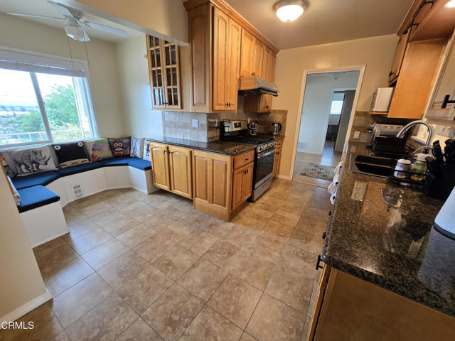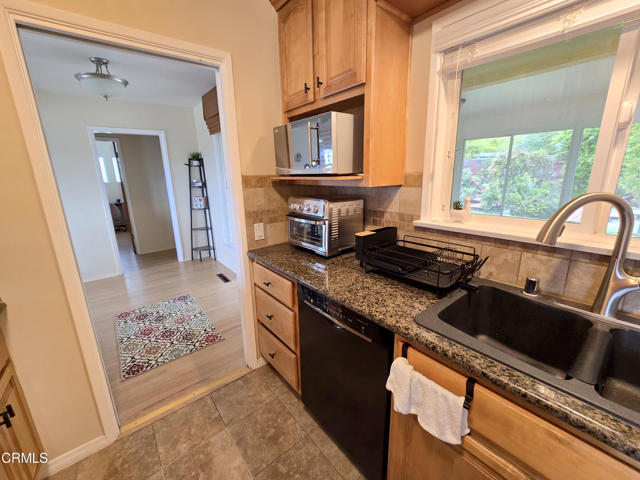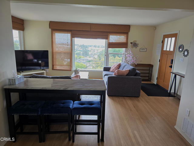 This beautifully remodeled, fully furnished mid-century traditional home is located in the historic Emery Park Hills neighborhood of Alhambra. Enjoy stunning panoramic views of the San Gabriel Valley, Mount Wilson, and the Big Bear mountains. The bright and well-designed floor plan features two large bedrooms with ample closet space and 1.75 bathrooms. The inviting living room is framed by a large picture window that showcases beautiful mountain views. The remodeled kitchen includes granite countertops, stainless steel appliances, and a cozy breakfast nook. The family room features a fireplace and sliding glass doors that bring in plenty of natural light and open to a large east-facing balcony, perfect for enjoying your morning coffee and beautiful California sunrises. Additional features include an enclosed lanai, a lower-level bonus room that works well as a home office or game room, and a two-car attached garage with an EV charging station and plenty of storage. The outdoor space is just as inviting, featuring a large patio with a pergola that overlooks a flat, grassy backyard with rose gardens, and mature fruit trees, ideal for relaxing or entertaining.
