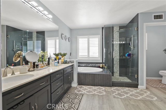 Welcome to 98 Mira Mesa, a beautifully upgraded 3-bedroom, 3-bathroom home located in the highly sought-after community of Rancho Santa Margarita. Designed for modern living, this home features sleek recessed lighting throughout and a whole-house water softener system for ultimate comfort. The thoughtful layout includes a rare main-floor bedroom and full bathroom perfect for guests or a home office while the upstairs bedrooms each boast their own attached bathrooms for maximum privacy. Just steps away from the award-winning Melinda Heights Elementary School. Recessed lighting, whole-house water softener, and spacious attached suites. Tenants enjoy full access to the beautiful community pool and local HOA amenities. Close to local parks, hiking trails, and the best dining RSM has to offer. This home is perfect for those seeking a sophisticated lifestyle in a family-oriented neighborhood.