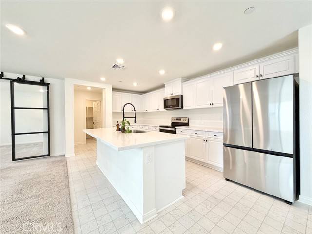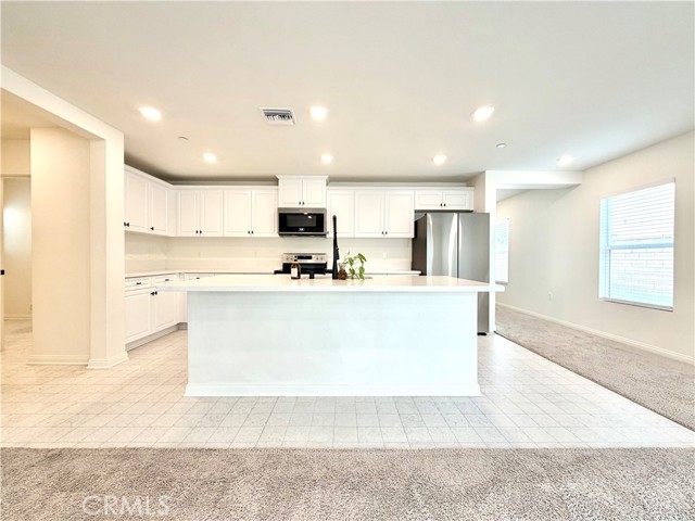 Welcome to this move-in ready 3 bedroom, 2.5 bathroom home featuring an abundance of UPGRADES, SOLAR, and a 2-car garage. As you arrive, enjoy the low-maintenance landscaping designed for everyday convenience. Inside, you’re greeted by a welcoming foyer with access to the second level, along with a conveniently located utility closet. Continue through to the open-concept family room and kitchen, where recessed lighting, a center island, white cabinetry, and stainless steel appliances create a bright and modern living space. Oversized sliding doors lead to the dining area, which can also function as a home office. Just beyond the kitchen, you’ll find a spacious pantry and a well-placed powder room. Upstairs, a versatile loft with recessed lighting offers additional living space and sits adjacent to the laundry room, complete with an included washer and dryer. The upper level also features two secondary bedrooms with carpet, recessed lighting, and ample closet space, along with a hallway bathroom offering white cabinetry, a vanity, and a shower/tub combination. A hallway storage closet adds extra functionality before entering the primary suite. The primary bedroom is generously sized and filled with natural light. The en-suite bathroom showcases a black-trim walk-in shower, dual sinks with a single vanity design, and a large walk-in closet. The backyard offers a concrete patio area complemented by a spacious green lawn, providing plenty of room for entertaining and outdoor gatherings. Located in proximity to shopping, dining, schools, freeway access, and so much more!!! Schedule your private showing today before it is too late!