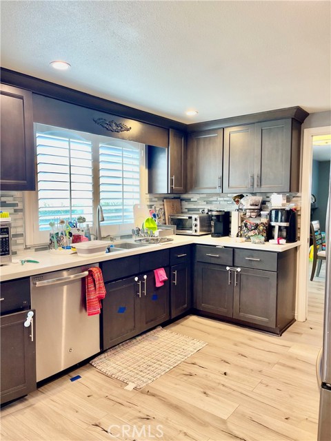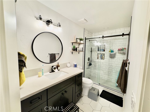 Don't miss this beautifully upgraded single-story gem nestled in the heart of Westminster. This turnkey 3 bedroom 2 bath home has been thoughtfully updated throughout and is move-in ready for its next family. Inside you'll find luxury vinyl plank flooring, recessed lighting, plantation shutters, and an open kitchen with shaker cabinets, quartz countertops, stainless steel appliances, and tile backsplash. Both bathrooms are fully renovated with tile showers, frameless glass enclosures, black matte fixtures, and quartz vanities. Step outside to your private backyard oasis featuring a custom paver patio, solid wood covered structure with ceiling fan, mature fruit trees, storage shed, and block walls. The front yard features low maintenance artificial turf, perfect for conserving water and keeping costs down. Additional highlights include an attached two car garage, no HOA, and a prime Westminster location minutes from the 405, Little Saigon, well-rated schools, and the best of Orange County dining and shopping.
