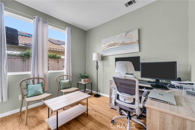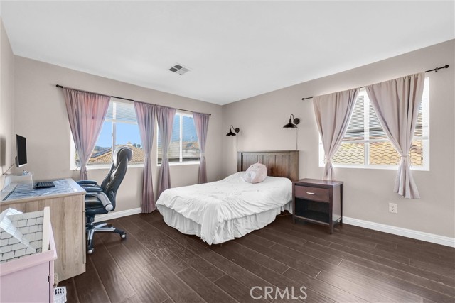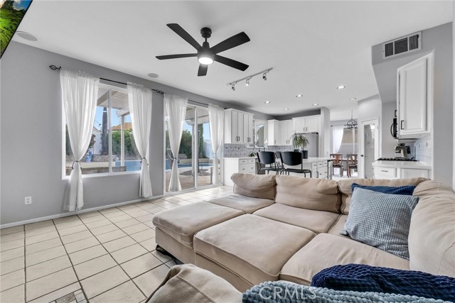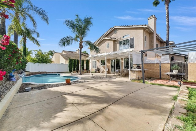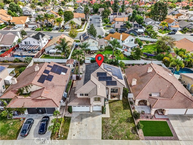 Welcome to this beautifully upgraded 5-bedroom, 3.5-bath home with paid solar, offering a rare combination of space, efficiency, and resort-style living in Murrieta. Step inside to soaring ceilings, abundant natural light, and a layout designed for both everyday living and effortless entertaining. The remodeled kitchen is a standout, featuring modern finishes, custom 40” cabinetry with exceptional storage, a large pantry, and a built-in wine fridge—opening seamlessly to the main living areas. Upstairs, the spacious primary suite offers his-and-hers walk-in closets with custom built-ins and a well-appointed ensuite bath. The additional bedrooms are generously sized and thoughtfully positioned, providing comfort and privacy throughout. A dedicated laundry room adds everyday convenience. Step outside to your private backyard retreat, complete with a sparkling pool, waterfall feature + solar heated pool —plus electrical already in place for a future spa or jacuzzi. Additional highlights include an EV-ready garage, no HOA, and energy-efficient living with approximately $600/year electricity costs. Conveniently located near top-rated schools, shopping, dining, and major commuter routes. Turnkey, energy-efficient, and move-in ready.