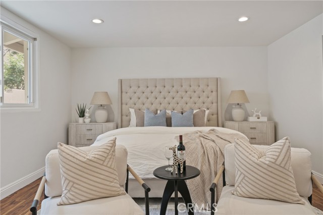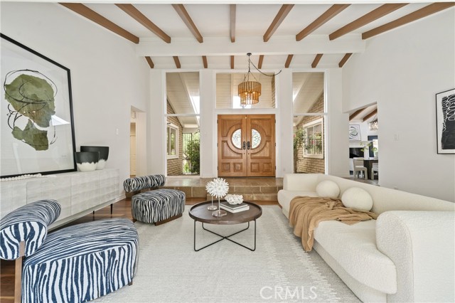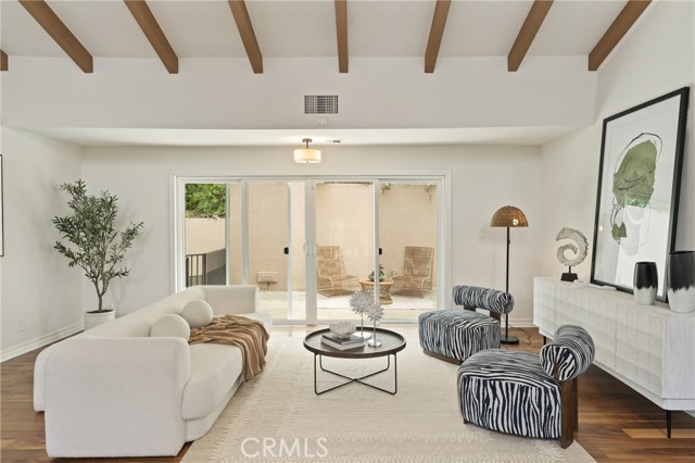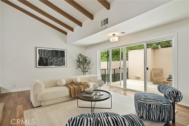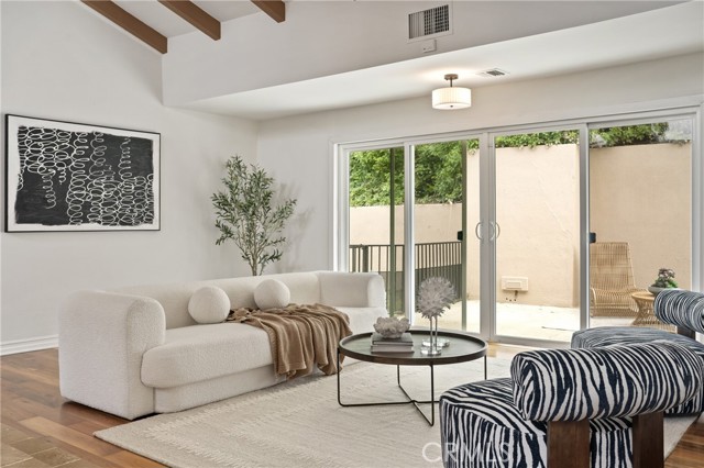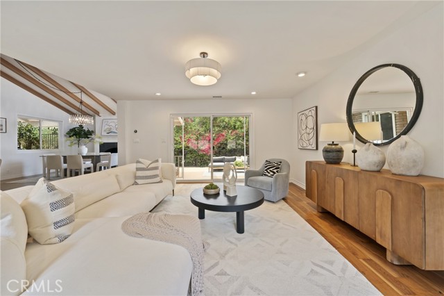 Welcome to this beautiful 3-bedroom, 2-bathroom home located in the desirable Sherman Oaks neighborhood. This charming property features a gated entrance with a circular driveway, offering both privacy and great curb appeal. As you enter, you are greeted by soaring vaulted ceilings with stunning exposed beams and a bright, open living room with travertine flooring and large sliding doors that bring in abundant natural light. To the left, you’ll find a spacious kitchen with a center island, seamlessly connected to a vaulted-ceiling dining area featuring a beautiful fireplace. Adjacent is a cozy family room with sliding doors that open to a private courtyard—perfect for indoor-outdoor living and entertaining. On the right side of the home are three generously sized bedrooms, all with hardwood flooring. The expansive primary suite includes its own en-suite bathroom, while the two additional large bedrooms share a well-appointed bathroom. Additional features include a two-car garage and fully paid-off solar system, offering energy efficiency and long-term savings.