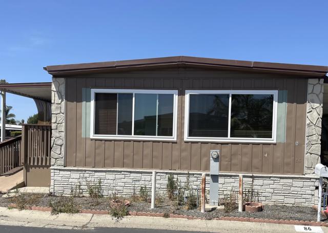 Charming 1,392 sq. ft. mobile home on a large corner lot in the desirable 55+ Vista Royal Lodge community. Open, bright floorplan with ample living space and convenient proximity to shopping and public transportation. Mature grapefruit, orange and lemon trees on property. Park is city rent-controlled; space rent $1,100/month. Park approval required prior to close. No yearly property taxes.More photos to follow.
