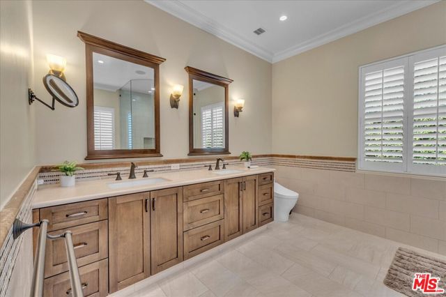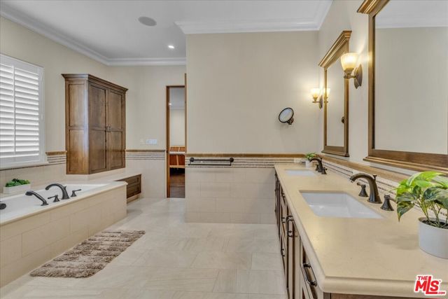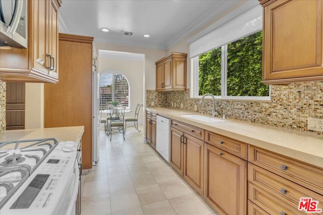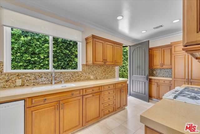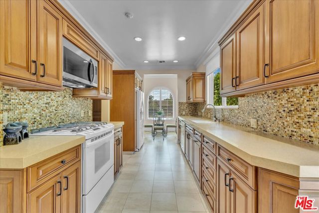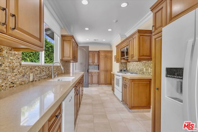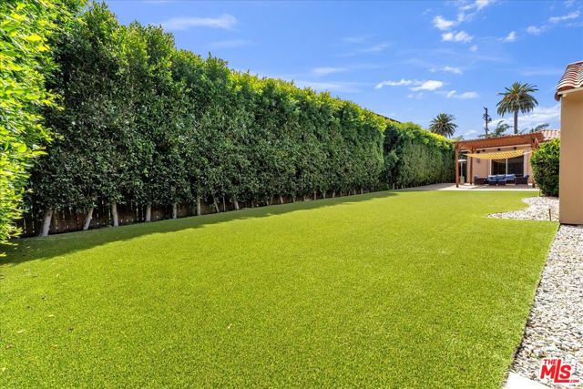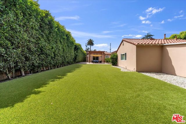BREATHTAKING 18,000+ sq. ft. GATED LOT! Sensational immaculate and like-new 3 + 3.5 stunning home with 10' ceilings and wood floors thru-out. Absolutely drop-dead gorgeous and fully (yet sparsely) furnished. Perfect for an artist/ writer/ creative / work-from-home person. Sparse and clean - ready to move in tomorrow. See photos - everything is top notch. Soaring ceiling formal entry foyer. Large Liv Rm/Great Rm w/FP and Entertainment Center. Designer kitchen with high counters, KitchenAid appliances and a sunny front-facing BK. Primary suite with huge walk-in closet and french doors to yard and patio. Guest bedroom is en suite and 3rd bedroom is set up as an office w/ loveseat. Powder 1/2 bath off entry. Built-in speakers/surround-sound in LR, baths, primary and outdoors. Patio is replete with patio furniture and gas heater for parties. Brand new BBQ provided. The yard is turf, not real grass, and the landscape is on a drip system. Washer & Dryer in hall closet - full size newer machines. New tankless water heater. Detached 2-car Garage is clean with storage cabinets & ladder for tenant to use. Exterior security cameras. Owner shall retain the Guest House for storage and to stay in if he visits the area. The Owner put his heart and soul into this house and it shows. Bring your fussiest clients - you can eat off the floor in this house! Close to Houses of Worship, pre-schools and religious institutions, as well as a quick jump onto Coldwater Cyn for Westside access.