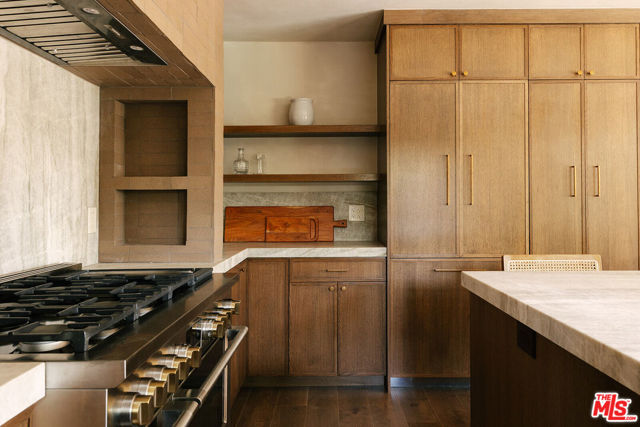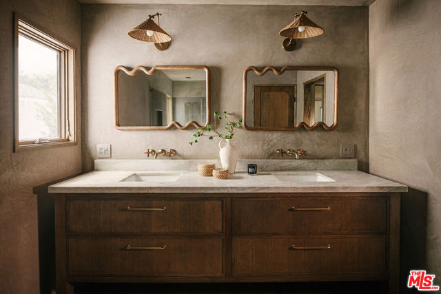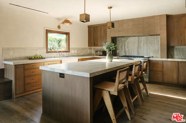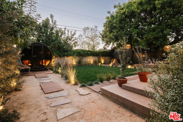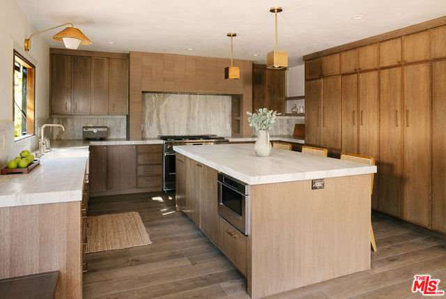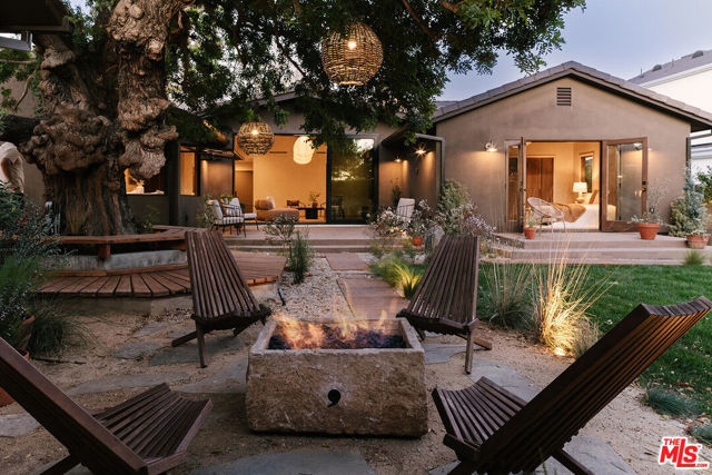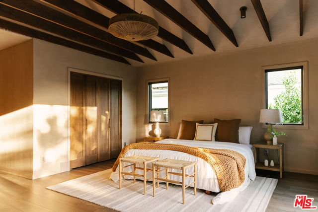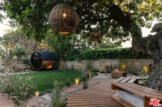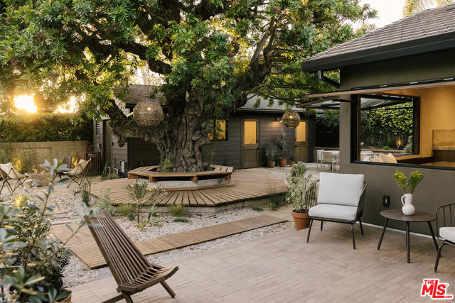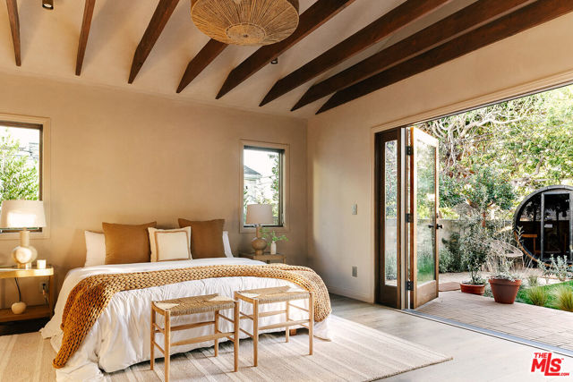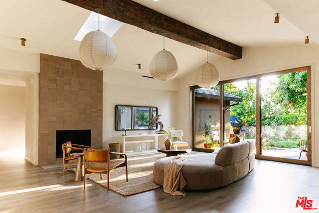 LIKA LIVING proudly presents Rustic Manor, restored and reimagined, set on an expansive ~9,000 sq ft lot with architect-designed landscaping. The main residence features 4 ensuite bedrooms plus a powder room, along with a separate two-room guest house. Warm natural tones and Roman clay finishes flow throughout, with expansive vaulted living spaces, skylights, and a dramatic 25-foot hand-hewn oak beam. Marvin windows frame the home with abundant light, while a grand family room with fireplace, 10-foot pocket doors, and remote-operated windows create seamless indoor-outdoor living. The chef's kitchen showcases custom oak cabinetry, Fisher & Paykel appliances, and refined finishes. Bathrooms feature limestone and elevated natural materials throughout. Extensively upgraded systems include new plumbing, electrical, HVAC, insulation, sewer, and gas lines, along with a high-efficiency tankless water heater and air purification. Outdoors, a beautiful mature tree anchors the backyard, complemented by a sauna, firepit, and serene, park-like setting ideal for relaxing or entertaining.