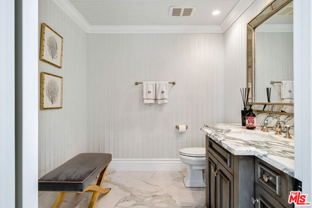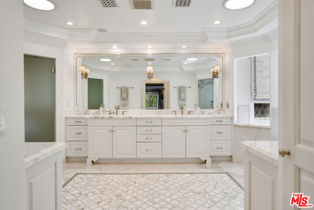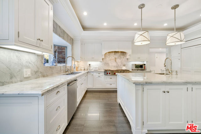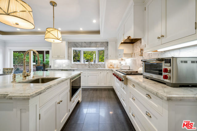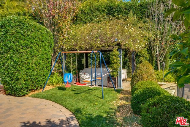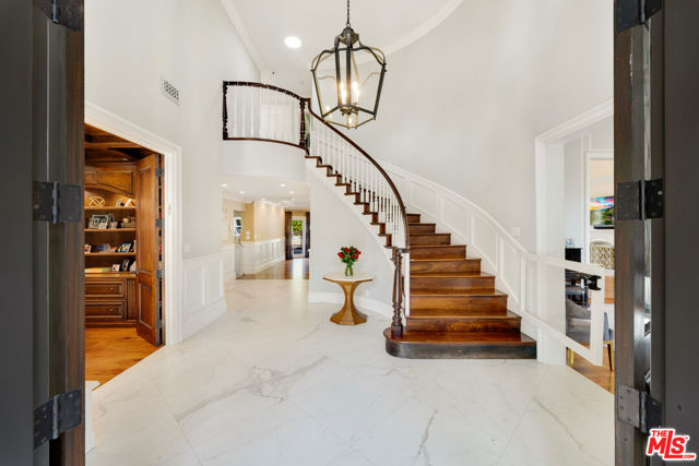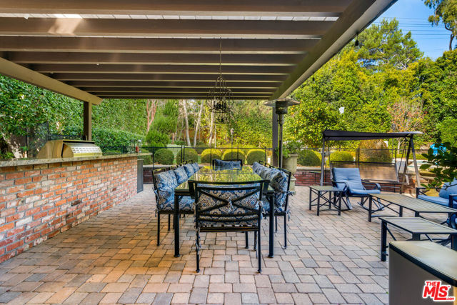Hidden behind a canopy of mature trees, this exquisite Traditional Tudor estate is a private sanctuary where timeless elegance meets modern luxury. Nestled on nearly half an acre in the heart of prestigious Brentwood Park, the home offers a rare blend of seclusion and convenience, just moments from the iconic Brentwood Country Mart. Reimagined to perfection, the estate's thoughtful design balances classic charm with contemporary sophistication. Five beautifully appointed en-suite bedrooms, including a grand primary suite with dual walk-in closets, provide both comfort and refinement. A stately office with rich coffered ceilings creates the perfect space for work or quiet retreat. At the heart of the home, the grand living room soars to 20 feet while its dramatic ceilings and elegant finishes enhance its inviting warmth. Large windows and skylights flood the home with natural light, creating a bright and airy ambiance that highlights the exquisite craftsmanship. Designed for effortless entertaining, the outdoor spaces unfold like a private resort. A sprawling covered patio leads to a beautifully integrated dining area, complete with a built-in BBQ ideal for al fresco gatherings. Just beyond, a crackling fire pit sets the stage for cozy evenings, while the lush lawn and sparkling pool offer a serene escape under the California sky. A grand motor court, with space for up to 12 cars, along with a three-car garage, ensures ample parking for residents and guests alike. Whether hosting or unwinding in quiet solitude, this extraordinary estate embodies the best of Brentwood living--an unmatched retreat that feels worlds away, yet remains close to the best of Los Angeles.