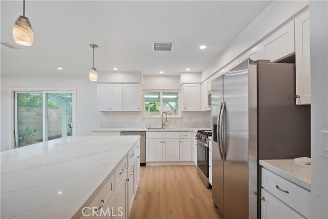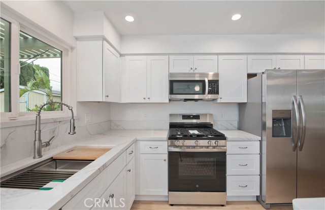 Completely remodeled and move-in ready, this 4-bedroom, 2-bath single-story home delivers modern design, functional space, and an unbeatable location. Situated in a desirable neighborhood with close proximity to the 118 Freeway, shopping, and dining, this property offers both convenience and lifestyle. The open-concept layout is anchored by a stunning new kitchen featuring quartz countertops, a large center island, and abundant cabinetry—ideal for everyday living and entertaining. New vinyl flooring runs throughout, complemented by fresh interior and exterior paint for a clean, contemporary feel. Both bathrooms have been tastefully remodeled with updated finishes. The exterior has been recently landscaped, enhancing curb appeal and outdoor enjoyment. The backyard features inviting patio areas with scenic mountain views—perfect for relaxing or hosting. Opportunities like this move quickly. Schedule a private showing today.