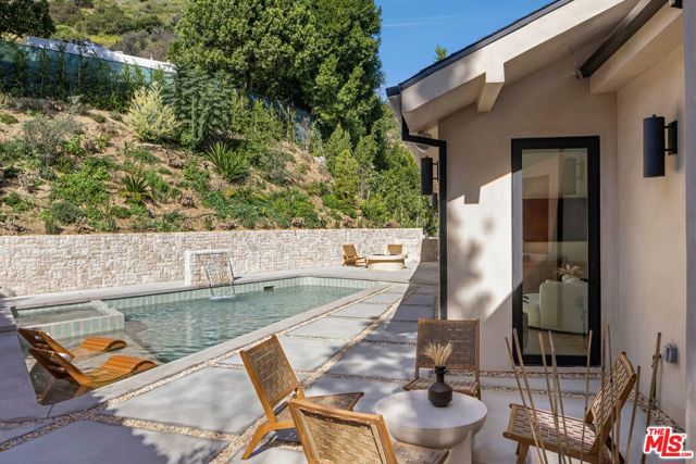 Nestled in the coveted hills of Sherman Oaks, this FULLY FURNISHED contemporary home offers 4 bedrooms and 3.5 baths with the perfect blend of luxury, style, and functionality. Step through custom double entry doors into an elegant living space highlighted by a stunning travertine porcelain slab fireplace and soaring 11-foot ceilings - wide-plank engineered wood floors flow throughout, while each bathroom showcases a refined Roman clay finish. Expansive Fleetwood sliding doors open to a private resort-like backyard with pool, spa, custom ledger stone throughout, a Pentair system and a full outdoor kitchen including a built-in barbecue, sink, and refrigerator surrounded by mature ficus throughout, ideal for effortless entertaining. This smart home is fully integrated with advanced RTI and ADT systems, featuring upgraded switches, Episode speakers, security cameras, and a premium whole-house audio setup. Thoughtfully designed and move-in ready, this home caters to the most discerning renters seeking a turnkey, fully furnished sanctuary in one of the Valley's most desirable neighborhoods.