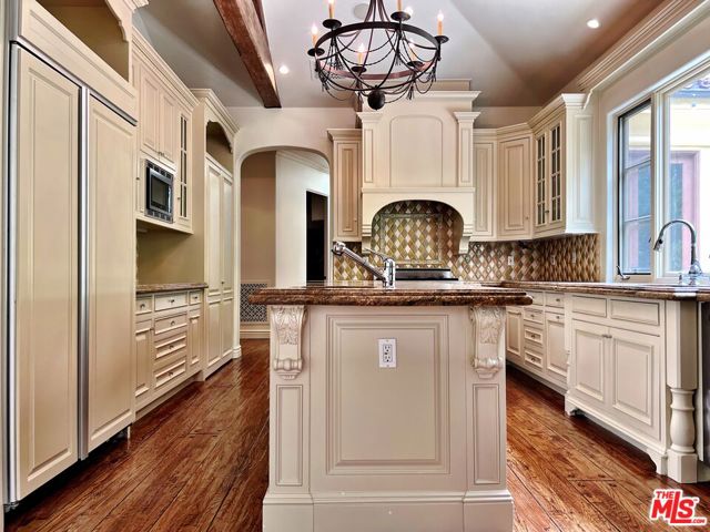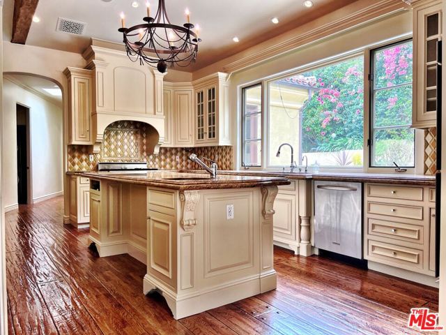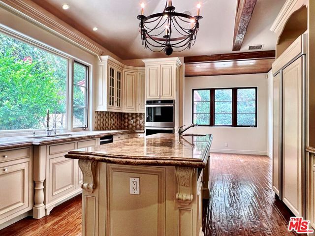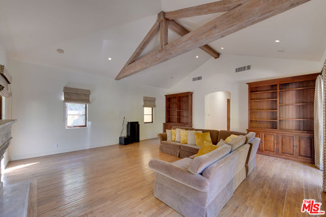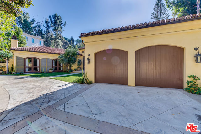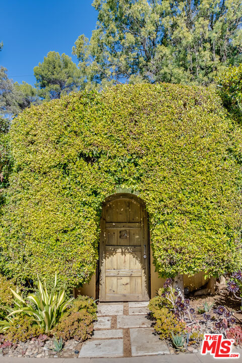 Some addresses are simply in a class of their own. Tucked behind private gates and lush hedgerows within the legendary 24-hour guard-gated enclave of Hidden Valley Estates - one of Beverly Hills' most coveted and discreet celebrity communities - this impeccably designed single-story Mediterranean estate offers the rare combination of absolute privacy, architectural pedigree, and effortless luxury living. Conceived by acclaimed architect Gus Duffy and built by master builder Gordon Gibson - who originally intended to keep the home for himself - every detail reflects an uncompromising standard. From the soaring glass-and-iron entry doors to the vaulted wood beam ceilings, hand-selected wide plank oak floors, and dual stone fireplaces, this is a home that was built to be experienced. The open-concept living and entertaining spaces flow seamlessly through French doors to a perfectly manicured front yard with circular motor court. The chef's kitchen features top-tier stainless appliances, a generous center island, and an eat-in layout ideal for both casual mornings and effortless entertaining. A grand family room with soaring ceilings and its own fireplace anchors the home's social heart. The primary suite is a private world unto itself. Fireplace, spa-inspired bath with dual vanities and separate closets, and serene views over the resort-style pool and spa. Three additional en-suite bedrooms plus a detached guest house provide ideal flexibility for staff, guests, or a dedicated home office. Beyond the walls: a LifeSource whole-home water filtration system, laundry room with dual washers and dryers, 2-car garage with Tesla charger, gated driveway parking for 4-5 additional vehicles, and your own private citrus grove (lemon, lime, orange, and mandarin) growing in the sun-drenched yard. Supremely private yet perfectly positioned, just minutes to both the Beverly Hills flats and the valley, with seamless access to the finest dining, shopping, and schools the Westside has to offer. This is not a rental. This is a lifestyle.