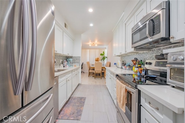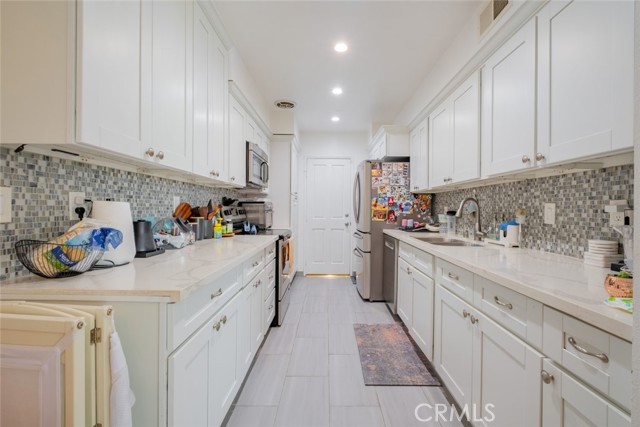 This charming condo in Sherman Oaks is now available for rent, offering 2 bedrooms, 2 bathrooms, and 1,322 sq ft of living space. It features beautiful, recessed lighting throughout, as well as access to a community pool and spa. The spacious family room boasts lovely lighting and seamlessly connects to the dining room and kitchen. The kitchen is styled in a beautiful gallery design, featuring a marble-like laminated countertop, ample storage space, and a stunning glass blue and green backsplash. Appliances include a dishwasher, microwave, refrigerator, and electric stove and oven. The primary bedroom is generously sized with mirrored closet doors and an en suite bathroom that includes dual sinks, a walk-in shower, and plenty of storage. The second bedroom is also spacious, offering ample closet space and convenient access to the hall bathroom. Additionally, the condo includes a good-sized backyard with an open patio space, perfect for outdoor enjoyment. Residents also have access to a community laundry area. Don't miss out on this fantastic opportunity to rent a beautiful condo in Sherman Oaks!