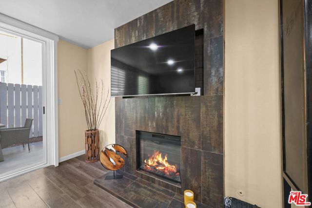 Welcome to 5951 Canterbury Drive #20, a rare corner end-unit in the highly desirable Los Cerros Townhomes of Culver City. This beautifully remodeled two-story townhouse offers 2 bedrooms and 1.5 bathrooms with no neighbors above or below with only one common wall, blending privacy with comfort. The open-concept layout features engineered hardwood floors, recessed lighting, a ceramic electric fireplace with a pull-out TV unit, and a seamless flow between the living, dining, and kitchen areas. A sliding glass door opens to a private patio, perfect for enjoying fresh air and al fresco dining. The fully updated kitchen boasts high-gloss lacquered cabinetry, quartz countertops, ceramic tile flooring, and stainless steel appliances including a refrigerator, microwave, dishwasher, and drop-in oven with stovetop. Upstairs, both bedrooms are spacious and filled with natural light, complemented by energy-efficient windows and modern remodeled bathrooms. Additional highlights include custom wooden railings, new plumbing, a tankless water heater, alarm system, and two side-by-side parking spaces with storage in the secured underground garage. Enjoy community amenities like a heated pool and easy access to Culver City's best dining, shopping, and entertainment all while tucked away in a peaceful, well-maintained neighborhood.