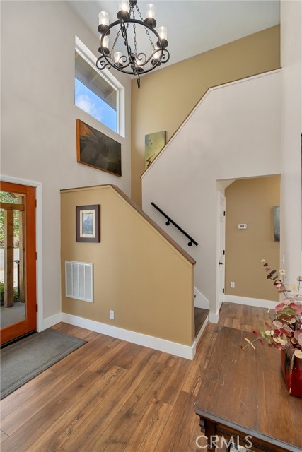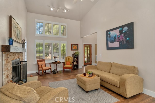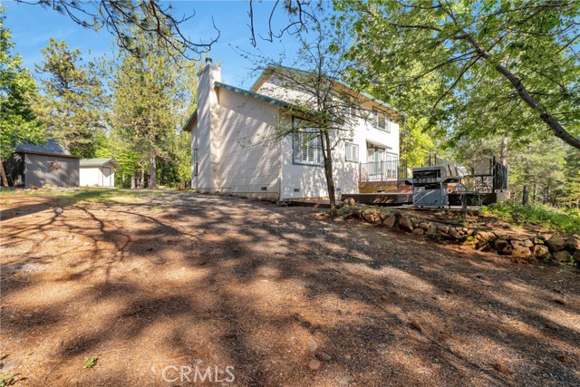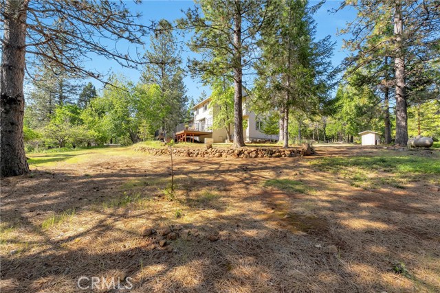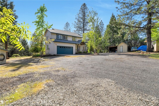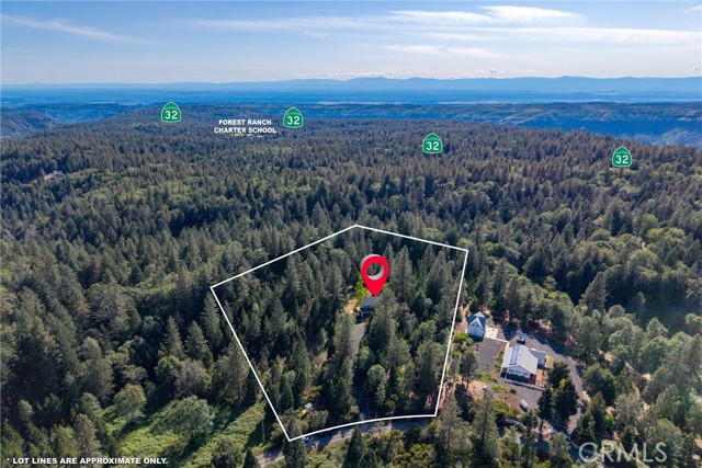 Tucked into the peaceful setting of Forest Ranch, this property offers a quiet retreat surrounded by nature while still being within reach of Chico. Set back from the road along a well-maintained drive, the home is framed by mature trees that create a sense of privacy and seclusion from the moment you arrive. Inside, the layout is both functional and inviting. A two-story entry welcomes you in, filling the space with natural light and creating an open first impression. From there, the main level flows easily from one space to the next, with a formal living room centered around a wood-burning fireplace that opens to the dining area overlooking the backyard. The updated kitchen features stamped concrete countertops, newer appliances, and connects directly to the family room, making it a natural gathering space. A half bath and laundry area are both conveniently located on the main level, while engineered laminate flooring adds a clean, refreshed feel throughout. Upstairs, all bedrooms are thoughtfully positioned and filled with natural light, with an updated hall bathroom easily serving the secondary spaces. The primary suite offers a unique elevated perspective through a large picture window, creating a tree-top view of the surrounding landscape. The en-suite bath becomes a place to truly unwind, featuring a soaking tub and a layout designed for relaxation, along with a walk-in closet for added convenience. Comfort is enhanced with central heating and air installed in approximately 2022, along with mini splits being added to the upstairs bedrooms. Set on 5.2 acres, the property continues to impress outdoors with a recently rebuilt no-maintenance back deck (approx. 2023), RV parking, and a largely level landscape that offers flexibility and usability rarely found in this setting. Additional updates including a roof installed around 2015, a Generac generator, whole house fan, additional water storage, and an oversized attached garage provide long-term functionality and peace of mind. A setting like this isn’t easy to find, private, peaceful, and designed for the kind of living that feels worlds away while still within reach.