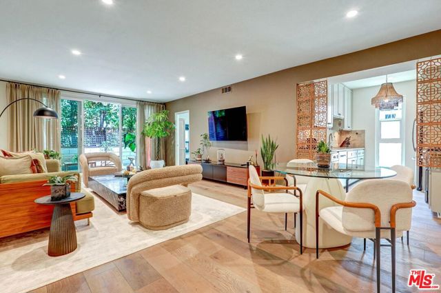 This stylishly appointed residence is located in the highly desirable Norma Triangle, in the heart of West Hollywood. A formal foyer and elegant double-door entry create a welcoming first impression, opening into a thoughtfully designed interior featuring recessed lighting, wide-plank engineered wood floors, and custom closets throughout. The refined kitchen showcases sleek stainless steel appliances and modern functionality. The spacious primary suite serves as a private retreat, positioned on the opposite side of the second bedroom, offering privacy. Sliding glass door leads to an inviting and generous patio oasis, complete with a tranquil fountain. Unit offers side-by-side parking. Enjoy the perfect blend of comfort and convenience within close proximity to some of the area's best entertainment, dining, and shopping destinations.