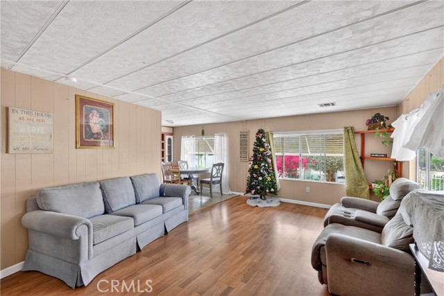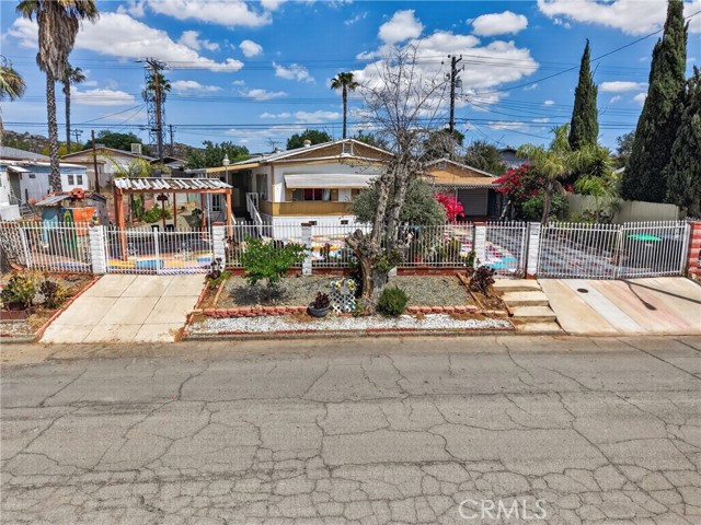 Lovely home in the City of Perris! This home features spacious bedrooms, a large living room, a dining area, and a cozy kitchen. It includes two bathrooms and is well maintained, with a detached garage and additional shed/storage. The primary bedroom has its own bathroom. The property sits on a spacious lot, perfect for entertaining, with fruit trees and a gated entrance for added privacy. Conveniently located near Enchanted Hills Elementary School, Enchanted Hills Park, the Metrolink station, and Downtown Perris. A must-see!