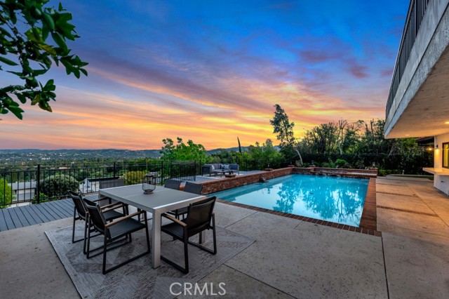Perched above the San Fernando Valley on one of the most prestigious streets in Woodland Hills, this majestic five-bedroom, four-bathroom estate offers 4,407 square feet of luxurious living space, ideal for high-end family living. Enjoy breathtaking, panoramic “jetliner” views of the entire valley from virtually every area of the property. Situated on an expansive 13,057-square-foot lot, the residence welcomes you with architectural excellence, featuring soaring vaulted wood-beamed ceilings, crisp lines, and grand open living areas thoughtfully designed to frame the stunning vistas through massive windows. The gourmet chef’s kitchen is a true centerpiece, showcasing distinctive dual islands and high-end finishes—perfect for both large-scale entertaining and everyday living. The oversized primary suite serves as a private sanctuary, complete with its own viewing balcony that offers a front-row seat to dazzling city lights and spectacular sunrises and sunsets. Step outside to the ultimate California backyard, where a sparkling pool and spa are complemented by a built-in BBQ station and a massive viewing deck with unobstructed 180-degree views. Whether hosting grand gatherings or enjoying the tranquility of the lush grounds, this rare property offers unparalleled scale, privacy, and prestige. Located within a top-tier school district and just minutes from world-class shopping and dining at The Commons at Calabasas and The Village, this legacy estate presents a unique opportunity to own one of the most coveted views in the Valley.